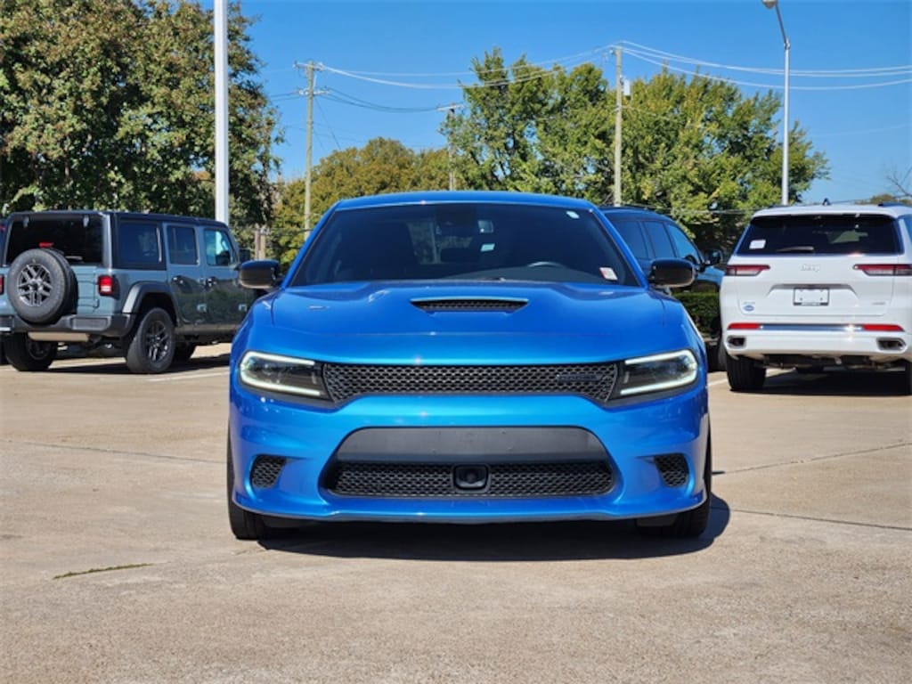 Certified. CARFAX One-Owner. Clean CARFAX. B5 Blue Pearlcoat 2023 Dodge Charger R/T R/T 8-Speed Automatic HEMI 5.7L V8 Multi Displacement VVT RWD Blacktop Package (Black 1-Piece Performance Spoiler, Black Dodge Grille Badge, Blacktop R/T Badge, Gloss Black I/P Cluster Trim Rings, Rhombi 2-Pc Wheel Center Cap, Satin Black Charger Decklid Badge, Satin Black Dodge Tail Lamp Badge, and Wheels: 20" x 8" Black Noise Painted), Quick Order Package 26N, Technology Group (Adaptive Cruise Control w/Stop, Advanced Brake Assist, Auto High Beam Headlamp Control, Full Speed FWD Collision Warn Plus, Lane Departure Warning Plus, and Rain Sensitive Windshield Wipers), FCA US LLC Certified Pre-Owned Certified, Black Cloth, 1-Yr SiriusXM Guardian Trial, 2-Piece Shark Fin Antenna, 4-Wheel Disc Brakes, 4G LTE Wi-Fi Hot Spot, 6 Speakers, 8.4" Touchscreen Display, ABS brakes, Air Conditioning, Alloy wheels, AM/FM radio: SiriusXM, Anti-whiplash front head restraints, Apple CarPlay, Apple CarPlay/Android Auto, Auto-dimming Rear-View mirror, Automatic temperature control, Brake assist, Bumpers: body-color, Cloth Performance Seats, Compass, Delay-off headlights, Driver door bin, Driver vanity mirror, Dual front impact airbags, Dual front side impact airbags, Electronic Stability Control, Emergency communication system: SiriusXM Guardian, For Details, Visit DriveUconnect.com, Four wheel independent suspension, Front anti-roll bar, Front Bucket Seats, Front Center Armrest, Front dual zone A/C, Front License Plate Bracket, Front reading lights, Fully automatic headlights, Garage door transmitter: HomeLink, Google Android Auto, GPS Antenna Input, HD Radio, Heated door mirrors, Illuminated entry, Integrated Center Stack Radio, Integrated Voice Command w/Bluetooth, Knee airbag, Leather Shift Knob, Low tire pressure warning, Manufacturer's Statement of Origin, Media Hub (2 USB, AUX), Occupant sensing airbag, Outside temperature display, Overhead airbag, Overhead console, Panic alarm, ParkView Rear Back-Up Camera, Passenger door bin, Passenger vanity mirror, Power 2-Way Driver Lumbar Adjust, Power 8-Way Driver Seat, Power door mirrors, Power driver seat, Power steering, Power Sunroof, Power windows, Radio: Uconnect 4C w/8.4" Display, Rear anti-roll bar, Rear Armrest w/Cupholder Seat, Rear reading lights, Rear seat center armrest, Rear window defroster, Remote keyless entry, Speed control, Speed-Sensitive Wipers, Split folding rear seat, Spoiler, Sport steering wheel, Steering wheel mounted audio controls, Tachometer, Telescoping steering wheel, Tilt steering wheel, Traction control, Trip computer, USB Host Flip, Variably intermittent wipers, and Wheels: 20" x 8" Machined w/Granite PockeT.