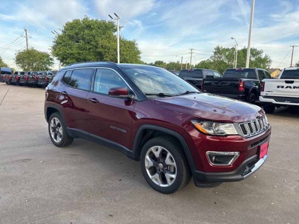 Certified. Clean CARFAX. Velvet Red Pearlcoat 2021 Jeep Compass Limited Limited 9-Speed 948TE Automatic 2.4L I4 4WD Quick Order Package 2GG, Sun and Sound Group (Power Front/Fixed Rear Full Sunroof and Premium Alpine Speaker System), FCA US LLC Certified Pre-Owned Certified, 4WD, 3.73 Axle Ratio, 4-Wheel Disc Brakes, 6 Speakers, ABS brakes, Air Conditioning, Alloy wheels, AM/FM radio: SiriusXM, Anti-whiplash front head restraints, Apple CarPlay/Android Auto, Auto-dimming Rear-View mirror, Automatic temperature control, Brake assist, Bumpers: body-color, Compass, Delay-off headlights, Driver door bin, Driver vanity mirror, Dual front impact airbags, Dual front side impact airbags, Electronic Stability Control, Four wheel independent suspension, Front anti-roll bar, Front Bucket Seats, Front Center Armrest w/Storage, Front dual zone A/C, Front fog lights, Front License Plate Bracket, Front reading lights, Fully automatic headlights, Heated door mirrors, Heated front seats, Heated steering wheel, Illuminated entry, Knee airbag, Leather Shift Knob, Leather Trimmed Bucket Seats, Low tire pressure warning, Manufacturer's Statement of Origin, Occupant sensing airbag, Outside temperature display, Overhead airbag, Overhead console, Panic alarm, ParkView Rear Back-Up Camera, Passenger door bin, Passenger vanity mirror, Power door mirrors, Power driver seat, Power steering, Power windows, Radio: Uconnect 4 w/8.4" Display, Rain sensing wipers, Rear anti-roll bar, Rear seat center armrest, Rear window defroster, Rear window wiper, Remote keyless entry, Roof rack: rails only, Security system, Speed control, Split folding rear seat, Spoiler, Steering wheel mounted audio controls, Tachometer, Telescoping steering wheel, Tilt steering wheel, Traction control, Trip computer, Turn signal indicator mirrors, Variably intermittent wipers, and Wheels: 18" x 7.0" Polished/Gray Pockets Aluminum.