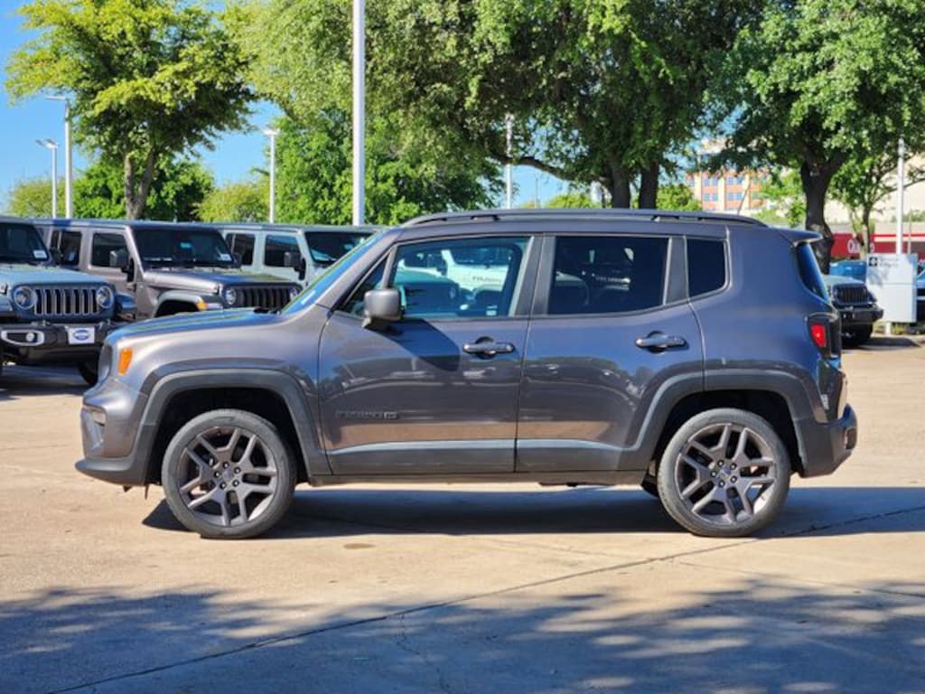 Certified. Clean CARFAX. Granite Crystal Metallic Clearcoat 2021 Jeep Renegade Latitude Latitude 9-Speed 948TE Automatic 2.4L I4 4WD Passive Entry Remote Start Package (Keyless Entry w/Panic Alarm and Remote Start System), Quick Order Package 2XY 80th Edition (1-Year SiriusXM Guardian Trial, 5-Year SiriusXM Traffic Service, 5-Year SiriusXM Travel Link Service, 8.4" Touchscreen Display, 80th Edition Premium Cloth Bucket Seats, Accent Color Exterior Mirrors, Berber Floor Mats w/80th Anniversary Tag, Black Headliner, For Details, Visit DriveUconnect.com, Gloss Black Steering Wheel Bezel, GPS Navigation, Granite Crystal Jeep Badge, HD Radio, Jeep 80th Anniversary Edition, Jeep 80th Anniversary Instrumental Panel Badge, Radio: Uconnect 4C Nav w/8.4" Display, Satin Granite Exterior Accents, Satin Granite Roof Rails, SiriusXM Traffic Plus, SiriusXM Travel Link, and Wheels: 19" x 7.5" Granite Painted Aluminum), FCA US LLC Certified Pre-Owned Certified, 17" x 7.0" Aluminum Wheels, 3.734 Final Drive Ratio, 4-Wheel Disc Brakes, 6 Speakers, ABS brakes, Air Conditioning, Alloy wheels, AM/FM radio: SiriusXM, Anti-whiplash front head restraints, Apple CarPlay/Android Auto, Automatic temperature control, Brake assist, Compass, Delay-off headlights, Driver door bin, Driver vanity mirror, Dual front impact airbags, Dual front side impact airbags, Electronic Stability Control, Emergency communication system: SiriusXM Guardian, Four wheel independent suspension, Front anti-roll bar, Front Bucket Seats, Front Center Armrest, Front dual zone A/C, Front fog lights, Front reading lights, Fully automatic headlights, Heated door mirrors, Illuminated entry, Knee airbag, Low tire pressure warning, Manual Adjust 4-Way Front Passenger Seat, Normal Duty Suspension, Occupant sensing airbag, Outside temperature display, Overhead airbag, Panic alarm, ParkView Rear Back-Up Camera, Passenger door bin, Passenger vanity mirror, Power door mirrors, Power steering, Power windows, Premium Cloth Bucket Seats, Radio data system, Radio: Uconnect 4 w/7" Display, Rear anti-roll bar, Rear window defroster, Rear window wiper, Remote keyless entry, Roof rack: rails only, Security system, Speed control, Split folding rear seat, Spoiler, Steering wheel mounted audio controls, Tachometer, Telescoping steering wheel, Tilt steering wheel, Traction control, Trip computer, Variably intermittent wipers, and VoltmeteR.