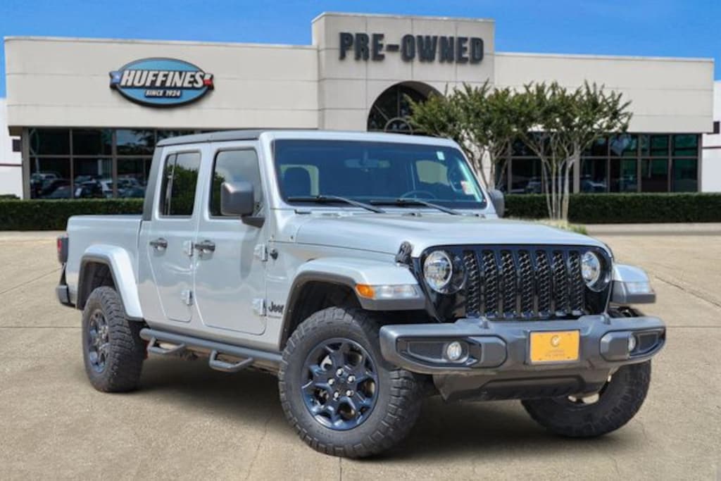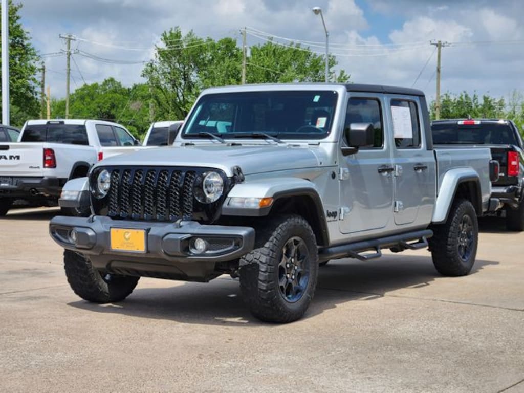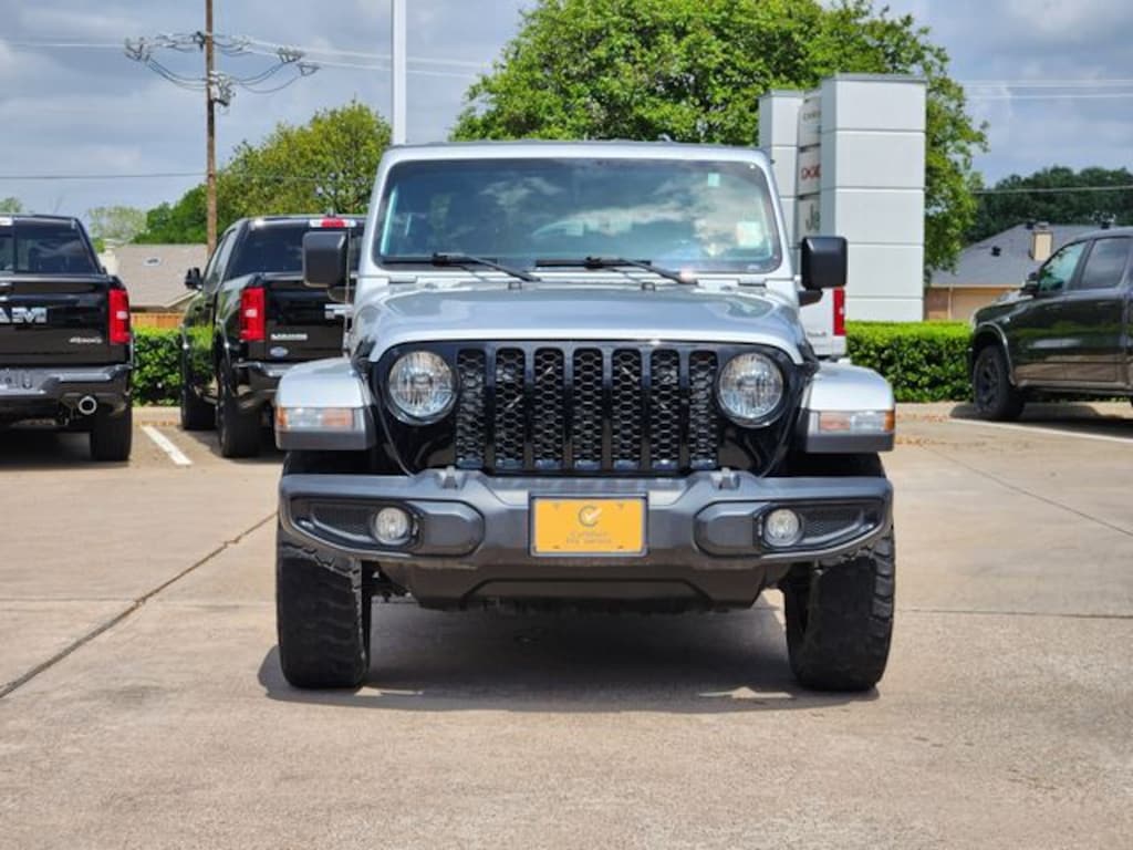 Certified. CARFAX One-Owner. Clean CARFAX. Silver Zynith Clearcoat 2023 Jeep Gladiator Willys Willys 8-Speed Automatic 3.6L V6 24V VVT 4WD 8.4" Radio & Premium Audio Group (1-Year SiriusXM Guardian Trial, 115V Auxiliary Power Outlet, 220 Amp Alternator, 400W Inverter, 4G LTE Wi-Fi Hot Spot, 5-Year SiriusXM Traffic Service, 5-Year SiriusXM Travel Link Service, 8.4" Touchscreen Display, Air Conditioning w/Auto Temperature Control, Alpine Premium Audio System, Apple CarPlay, Auto-Dimming Rear-View Mirror, Console Bin Task Light, Emergency/Assistance Call, Google Android Auto, GPS Antenna Input, GPS Navigation, HD Radio, Integrated Center Stack Radio, Integrated Voice Command w/Bluetooth, Media Hub w/2 Charge Only USBs, Off-Road Info Pages, Radio: Uconnect 4C Nav w/8.4" Display, SiriusXM Radio Service, SiriusXM Satellite Radio, SiriusXM Traffic Plus, SiriusXM Travel Link, and USB Host Flip), Convenience Group, Quick Order Package 23W Willys (4-Wheel Drive Decal, 97 MPH Vehicle Max Speed Calibration, Anti-Spin Differential Rear Axle, Automatic Headlamps, Black Grille, Body Color Fender Flares (2-Piece), Deep Tint Sunscreen Windows, Front 1-Touch Down Power Windows, Front Heavy Duty Red Accent Shock Absorbers, Mold In Color Bumper w/Gloss Black, MOPAR All-Weather Slush Mats, Power Heated Mirrors, Power Tailgate Lock, Premium Wrapped Steering Wheel, Protection Sill Rails, Rear Heavy Duty Red Accent Shock Absorbers, Remote Keyless Entry, Security Alarm, Speed Sensitive Power Locks, Sun Visors w/Illuminated Vanity Mirrors, Wheels: 17" x 7.5" Black Aluminum, Willys, and Willys Hood Decal), Quick Order Package 24W Willys, Technology Group (Cluster 7.0" TFT Color Display and For More Info, Call 800-643-2112), FCA US LLC Certified Pre-Owned Certified, 3.73 Rear Axle Ratio, 4-Wheel Disc Brakes, 8 Speakers, ABS brakes, Air Conditioning, AM/FM radio, Apple CarPlay/Android Auto, Black 3-Piece Hard Top, Brake assist, Cloth Low-Back Bucket Seats, Compass, Delay-off headlights, Driver door bin, Driver vanity mirror, Dual front impact airbags, Dual front side impact airbags, Electronic Stability Control, Emergency communication system, Freedom Panel Storage Bag, Front anti-roll bar, Front Bucket Seats, Front Center Armrest w/Storage, Front Door Locks 2-Door Passive Entry (DISC), Front fog lights, Front License Plate Bracket, Front reading lights, Integrated roll-over protection, Low tire pressure warning, MOPAR Hardtop Headliner, MOPAR Spray In Bedliner, No Soft Top, Normal Duty Suspension, Occupant sensing airbag, Outside temperature display, ParkView Rear Back-Up Camera, Passenger door bin, Passenger vanity mirror, Power steering, Radio data system, Radio: Uconnect 4 w/7" Display, Rear anti-roll bar, Rear reading lights, Rear Sliding Window, Rear Window Defroster, Speed control, Split folding rear seat, Steering wheel mounted audio controls, Tachometer, Telescoping steering wheel, Tilt steering wheel, Traction control, Trip computer, Variably intermittent wipers, and Wheels: 17" x 7.5" Black Steel Styled.