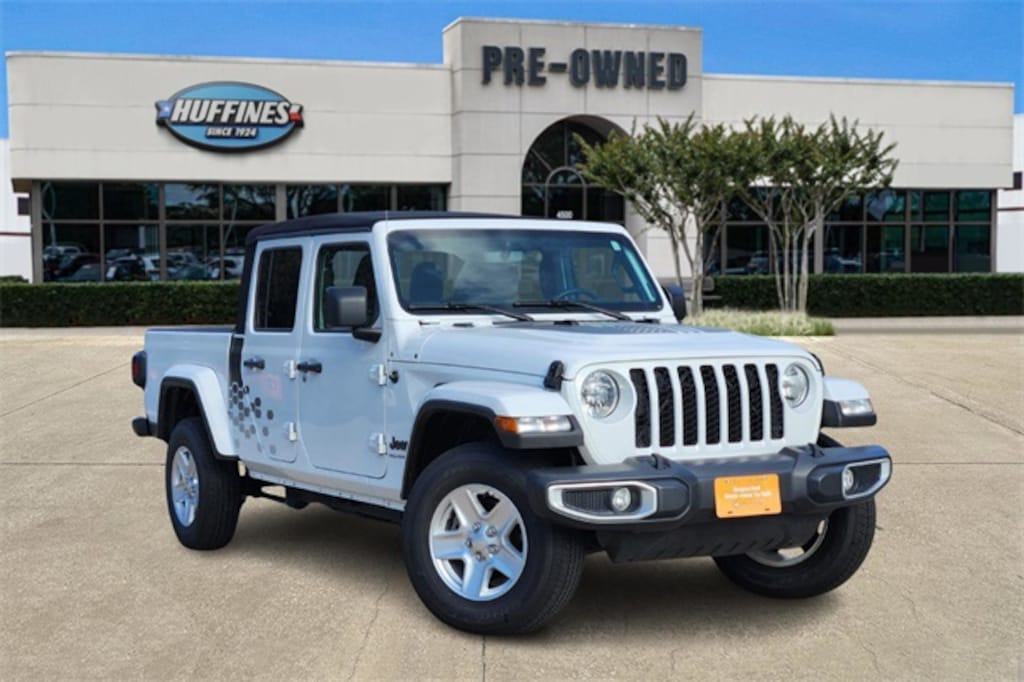 Certified. CARFAX One-Owner. Bright White Clearcoat 2023 Jeep Gladiator Sport Sport 8-Speed Automatic 3.6L V6 24V VVT 4WD 8.4" Radio & Premium Audio Group (1-Year SiriusXM Guardian Trial, 115V Auxiliary Power Outlet, 220 Amp Alternator, 400W Inverter, 4G LTE Wi-Fi Hot Spot, 5-Year SiriusXM Traffic Service, 5-Year SiriusXM Travel Link Service, 8.4" Touchscreen Display, Air Conditioning w/Auto Temperature Control, Alpine Premium Audio System, Apple CarPlay, Auto-Dimming Rear-View Mirror, Console Bin Task Light, Emergency/Assistance Call, Google Android Auto, GPS Antenna Input, GPS Navigation, HD Radio, Integrated Center Stack Radio, Integrated Voice Command w/Bluetooth, Media Hub w/2 Charge Only USBs, Off-Road Info Pages, Radio: Uconnect 4C Nav w/8.4" Display, SiriusXM Radio Service, SiriusXM Satellite Radio, SiriusXM Traffic Plus, SiriusXM Travel Link, and USB Host Flip), Convenience Group, Quick Order Package 24S Sport S (Automatic Headlamps, Deep Tint Sunscreen Windows, Front 1-Touch Down Power Windows, Normal Duty Plus Suspension, Power Heated Mirrors, Power Tailgate Lock, Premium Wrapped Steering Wheel, Remote Keyless Entry, Security Alarm, Speed Sensitive Power Locks, Sport S, Sun Visors w/Illuminated Vanity Mirrors, and Wheels: 17" x 7.5 Tech Silver Aluminum), Technology Group (Cluster 7.0" TFT Color Display and For More Info, Call 800-643-2112), Trailer Tow Package (240 Amp Alternator, Class IV Receiver Hitch, Heavy-Duty Engine Cooling, and Trailer Hitch Zoom), FCA US LLC Certified Pre-Owned Certified, 3.73 Rear Axle Ratio, 4-Wheel Disc Brakes, 8 Speakers, ABS brakes, Air Conditioning, AM/FM radio, Apple CarPlay/Android Auto, Brake assist, Cloth Low-Back Bucket Seats, Compass, Delay-off headlights, Driver door bin, Driver vanity mirror, Dual front impact airbags, Dual front side impact airbags, Electronic Stability Control, Emergency communication system, Front anti-roll bar, Front Bucket Seats, Front Center Armrest w/Storage, Front Door Locks 2-Door Passive Entry (DISC), Front fog lights, Front License Plate Bracket, Front reading lights, Hex MOPAR Body Side Graphic, Integrated roll-over protection, Low tire pressure warning, MOPAR American Flag Hood Decal, Normal Duty Suspension, Occupant sensing airbag, Outside temperature display, ParkView Rear Back-Up Camera, Passenger door bin, Passenger vanity mirror, Power steering, Premium Black Sunrider Soft Top, Radio data system, Radio: Uconnect 4 w/7" Display, Rear anti-roll bar, Rear reading lights, Speed control, Split folding rear seat, Steering wheel mounted audio controls, Tachometer, Telescoping steering wheel, Tilt steering wheel, Traction control, Trip computer, Variably intermittent wipers, Wheels: 17" x 7.5" Black Steel Styled, and Wheels: 17" x 7.5" Tech Silver Aluminum (DISC)