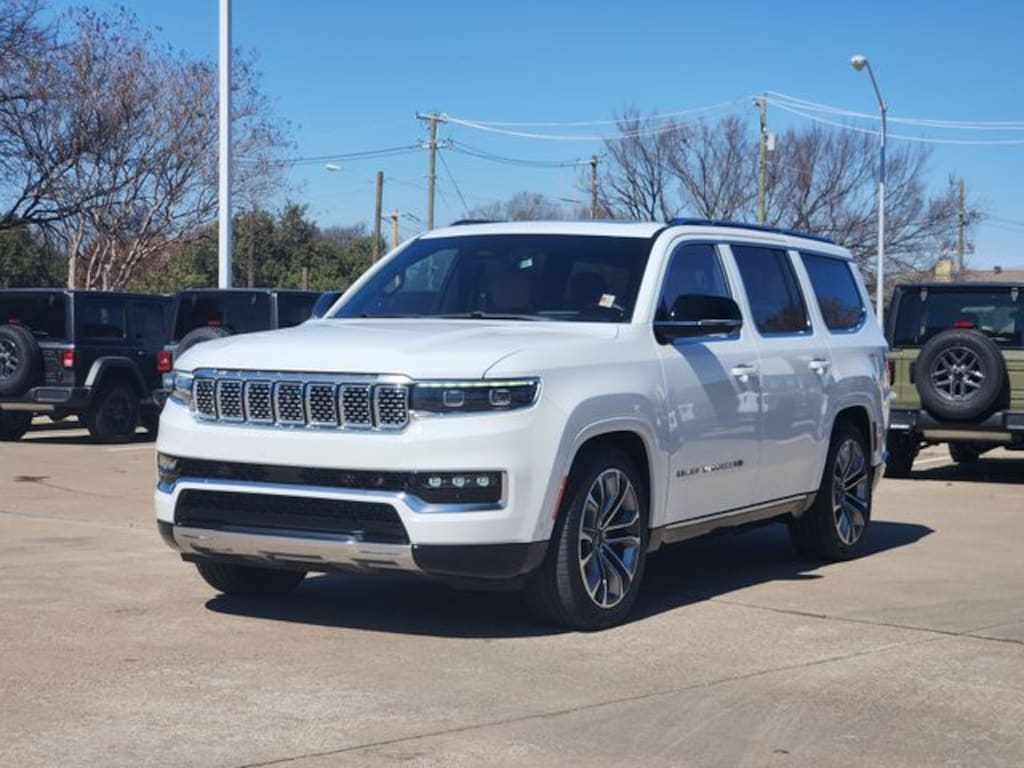 Certified. CARFAX One-Owner. Clean CARFAX. Bright White Clearcoat 2024 Jeep Grand Wagoneer Series III Series III 8-Speed Automatic 3.0L I6 4WD MOPAR Interior Protection Package (All-Season Floor Mats and Cargo Tray), Quick Order Package 28W, Rear Seat Video Group 1 (Amazon Fire TV Built-In, Seatback Video Screens, and Video USB Port), Two Tone Paint Group, FCA US LLC Certified Pre-Owned Certified, 3.92 Rear Axle Ratio, 3rd row seats: bench, 4-Wheel Disc Brakes, ABS brakes, Adjustable pedals, Air Conditioning, Alloy wheels, AM/FM radio: SiriusXM with 360L, Anti-whiplash front head restraints, Apple CarPlay/Android Auto, Audio memory, Auto High-beam Headlights, Auto-dimming door mirrors, Auto-dimming Rear-View mirror, Auto-leveling suspension, Automatic temperature control, Body Color Roof w/PXJ, Brake assist, Bumpers: body-color, Compass, Delay-off headlights, Driver door bin, Driver vanity mirror, Driver's Seat Mounted Armrest, Dual front impact airbags, Dual front side impact airbags, Electronic Stability Control, Emergency communication system: Wagoneer Connect, Four wheel independent suspension, Front anti-roll bar, Front Bucket Seats, Front Center Armrest w/Storage, Front dual zone A/C, Front fog lights, Front reading lights, Fully automatic headlights, Garage door transmitter, Genuine wood console insert, Genuine wood dashboard insert, Genuine wood door panel insert, Heads-Up Display, Heated door mirrors, Heated front seats, Heated rear seats, Heated steering wheel, Illuminated entry, Knee airbag, Leather steering wheel, Low tire pressure warning, Memory seat, Navigation System, Night vision lights, Normal Duty Suspension, Occupant sensing airbag, Outside temperature display, Overhead airbag, Overhead console, Panic alarm, Passenger door bin, Passenger seat mounted armrest, Passenger vanity mirror, Pedal memory, Power adjustable front head restraints, Power door mirrors, Power driver seat, Power Liftgate, Power moonroof, Power passenger seat, Power steering, Power windows, Premium Leather Trimmed Bucket Seats, Radio data system, Radio: Uconnect 5 Nav w/12.0" Display, Rain sensing wipers, Rear air conditioning, Rear anti-roll bar, Rear dual zone A/C, Rear reading lights, Rear seat center armrest, Rear window defroster, Rear window wiper, Reclining 3rd row seat, Remote keyless entry, Roof rack, Security system, Speed control, Speed-sensing steering, Speed-Sensitive Wipers, Split folding rear seat, Steering wheel memory, Steering wheel mounted audio controls, Tachometer, Telescoping steering wheel, Tilt steering wheel, Traction control, Trip computer, Turn signal indicator mirrors, Variably intermittent wipers, Ventilated front seats, Ventilated rear seats, Voltmeter, Wheels: 22" x 9.0" Painted Aluminum, and Wheels: 22" x 9.0" Premium 4 Aluminum.