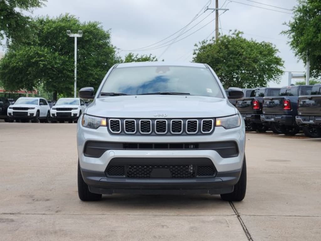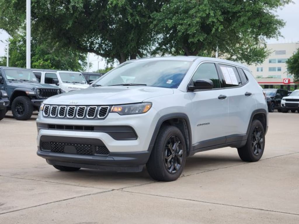 Certified. CARFAX One-Owner. Clean CARFAX. Silver Zynith Metallic Clearcoat 2025 Jeep Compass Sport Sport 8-Speed Automatic 2.0L I4 DOHC 4WD MOPAR Interior Premium Package (MOPAR Carpet Cargo Mat, MOPAR Pedal Kit, and MOPAR Premium Carpet Floor Mats), Quick Order Package 29A, FCA US LLC Certified Pre-Owned Certified, 4WD, 17" x 7" Aluminum Wheels, 3.73 Final Drive Ratio, 4-Wheel Disc Brakes, 6 Speakers, ABS brakes, Air Conditioning, Alloy wheels, AM/FM radio: SiriusXM, Apple CarPlay/Android Auto, Brake assist, Bumpers: body-color, Cloth Low-Back Bucket Seats, Compass, Delay-off headlights, Driver door bin, Driver vanity mirror, Dual front impact airbags, Dual front side impact airbags, Electronic Stability Control, Emergency communication system: Jeep Connect, Four wheel independent suspension, Front anti-roll bar, Front Bucket Seats, Front Center Armrest w/Storage, Front License Plate Bracket, Front reading lights, Fully automatic headlights, Heated door mirrors, Illuminated entry, Knee airbag, Leather steering wheel, Low tire pressure warning, Occupant sensing airbag, Outside temperature display, Overhead airbag, Overhead console, Panic alarm, ParkView Rear Back-Up Camera, Passenger door bin, Passenger vanity mirror, Power door mirrors, Power steering, Power windows, Premium audio system: UConnect 5, Radio: Uconnect 5 w/8.4" Display, Rear anti-roll bar, Rear seat center armrest, Rear window defroster, Rear window wiper, Remote keyless entry, Security system, Speed control, Split folding rear seat, Spoiler, Steering wheel mounted audio controls, Tachometer, Telescoping steering wheel, Tilt steering wheel, Traction control, Trip computer, and Variably intermittent wipers.