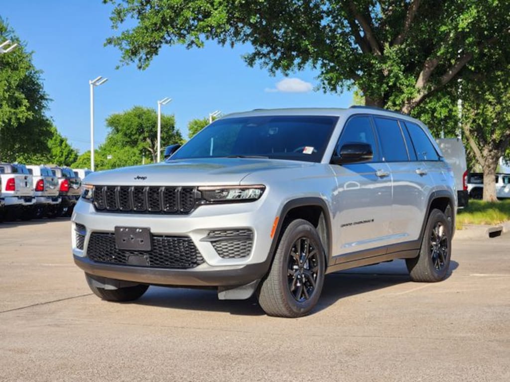 Recent Arrival! Certified. CARFAX One-Owner. Clean CARFAX. Silver Zynith 2025 Jeep Grand Cherokee Altitude Altitude 8-Speed Automatic 3.6L V6 24V VVT RWD Altitude Appearance Package, Quick Order Package 23B Altitude (115V Auxiliary Power Outlet, Black Headliner, Capri Leatherette/Suede Seats, Delete Laredo Badge, Gloss Black Exterior Accents, Heated Front Seats, Heated Steering Wheel, Power Liftgate, Rain Sensitive Windshield Wipers, Remote Start System, Selectable Tire Fill Alert, Wheels: 18" x 8" Fully Painted Aluminum 1, and Wireless Charging Pad), FCA US LLC Certified Pre-Owned Certified, 4-Wheel Disc Brakes, 6 Speakers, ABS brakes, Air Conditioning, Alloy wheels, AM/FM radio: SiriusXM, Anti-whiplash front head restraints, Automatic temperature control, Brake assist, Bumpers: body-color, Cloth Seats, Compass, Delay-off headlights, Driver door bin, Driver vanity mirror, Dual front impact airbags, Dual front side impact airbags, Electronic Stability Control, Emergency communication system, Four wheel independent suspension, Front anti-roll bar, Front Bucket Seats, Front Center Armrest w/Storage, Front dual zone A/C, Front License Plate Bracket, Front reading lights, Fully automatic headlights, Heated door mirrors, Illuminated entry, Knee airbag, Low tire pressure warning, Model Year Tracking, Normal Duty Suspension, Occupant sensing airbag, Outside temperature display, Overhead airbag, Overhead console, Panic alarm, ParkView Rear Back-Up Camera, Passenger door bin, Passenger vanity mirror, Power door mirrors, Power driver seat, Power steering, Power windows, Radio data system, Radio: Uconnect 5 with 8.4" Display, Rear anti-roll bar, Rear reading lights, Rear window defroster, Rear window wiper, Remote keyless entry, Security system, Speed control, Speed-Sensitive Wipers, Split folding rear seat, Spoiler, Steering wheel mounted audio controls, Tachometer, Telescoping steering wheel, Tilt steering wheel, Traction control, Trip computer, Variably intermittent wipers, Voltmeter, and Wheels: 17" x 6.5" Fully Painted Aluminum.