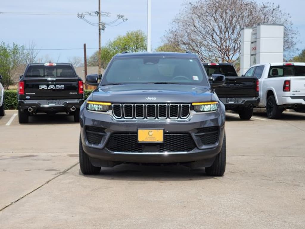 New Price! Recent Arrival! Certified. CARFAX One-Owner. Clean CARFAX. Baltic Gray Metallic Clearcoat 2025 Jeep Grand Cherokee Laredo Laredo 8-Speed Automatic 3.6L V6 24V VVT RWD Quick Order Package 23A Laredo, FCA US LLC Certified Pre-Owned Certified, 4-Wheel Disc Brakes, 6 Speakers, ABS brakes, Air Conditioning, Alloy wheels, AM/FM radio: SiriusXM, Anti-whiplash front head restraints, Automatic temperature control, Brake assist, Bumpers: body-color, Cloth Seats, Compass, Delay-off headlights, Driver door bin, Driver vanity mirror, Dual front impact airbags, Dual front side impact airbags, Electronic Stability Control, Emergency communication system, Four wheel independent suspension, Front anti-roll bar, Front Bucket Seats, Front Center Armrest w/Storage, Front dual zone A/C, Front License Plate Bracket, Front reading lights, Fully automatic headlights, Heated door mirrors, Illuminated entry, Knee airbag, Low tire pressure warning, Model Year Tracking, Normal Duty Suspension, Occupant sensing airbag, Outside temperature display, Overhead airbag, Overhead console, Panic alarm, ParkView Rear Back-Up Camera, Passenger door bin, Passenger vanity mirror, Power door mirrors, Power driver seat, Power steering, Power windows, Radio data system, Radio: Uconnect 5 with 8.4" Display, Rear anti-roll bar, Rear reading lights, Rear window defroster, Rear window wiper, Remote keyless entry, Security system, Speed control, Speed-Sensitive Wipers, Split folding rear seat, Spoiler, Steering wheel mounted audio controls, Tachometer, Telescoping steering wheel, Tilt steering wheel, Traction control, Trip computer, Variably intermittent wipers, Voltmeter, and Wheels: 17" x 6.5" Fully Painted Aluminum.