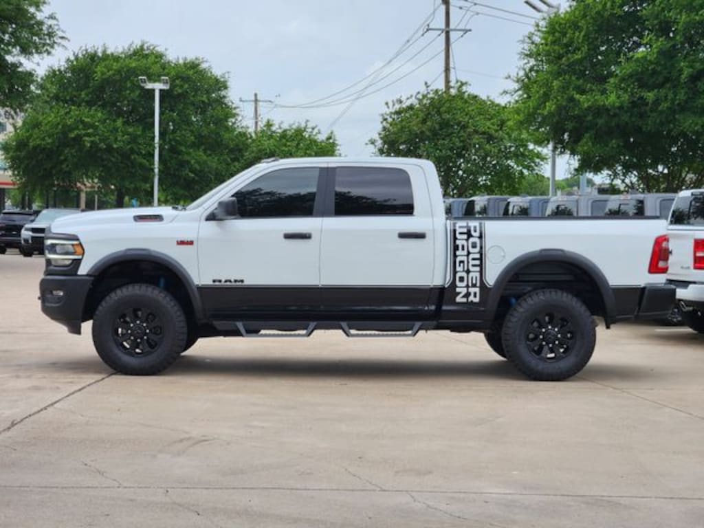 Certified. Clean CARFAX. Bright White Clearcoat 2021 Ram 2500 Power Wagon Power Wagon 8-Speed Automatic 6.4L V8 4WD Power Wagon Level 1 Equipment Group (2nd Row In Floor Storage Bins, Foam Bottle Insert (Door Trim Panel), Heated Front Seats, Heated Steering Wheel, Power Adjustable Pedals, Remote Start System, Remote Tailgate Release, Sun Visors w/Illuminated Vanity Mirrors, and Universal Garage Door Opener), Quick Order Package 2GP Power Wagon, FCA US LLC Certified Pre-Owned Certified, 1-Year SiriusXM Guardian Trial, 115V Auxiliary Rear Power Outlet, 2 Way Rear Headrest Seat, 4 Way Front Headrests, 4-Wheel Disc Brakes, 4.10 Axle Ratio, 40/20/40 Split Bench Seat, 4G LTE Wi-Fi Hot Spot, 5-Year SiriusXM Traffic Service, 5-Year SiriusXM Travel Link Service, 6 Speakers, 8.4" Touchscreen Display, 9 Alpine Speakers w/Subwoofer, ABS brakes, Air Conditioning, Alloy wheels, AM/FM radio: SiriusXM, Apple CarPlay, Apple CarPlay/Android Auto, Auto-dimming Rear-View mirror, Black Exterior Mirrors, Black Wheel Center Hub, Block heater, Brake assist, Cloth Power Bench Seat w/Emboss Tread Pattern, Compass, Delay-off headlights, Disassociated Touchscreen Display, Driver door bin, Dual front impact airbags, Dual front side impact airbags, Electronic Stability Control, Exterior Mirrors w/Heating Element, Folding Flat Load Floor Storage, For Details Visit DriveUconnect.com, Front anti-roll bar, Front Center Armrest w/Storage, Front fog lights, Front License Plate Bracket, Front reading lights, Fully automatic headlights, Google Android Auto, GPS Antenna Input, GPS Navigation, HD Radio, Heated door mirrors, Illuminated entry, Integrated Center Stack Radio, Integrated Voice Command w/Bluetooth, Leather steering wheel, Low tire pressure warning, Manufacturer's Statement of Origin, Occupant sensing airbag, Off-Road Information Pages, Outside temperature display, Overhead airbag, Overhead console, Panic alarm, ParkView Rear Back-Up Camera, Passenger door bin, Passenger vanity mirror, Power 2-Way Driver Lumbar Adjust, Power door mirrors, Power driver seat, Power Heated Fold-Away Mirrors, Power steering, Power windows, Radio data system, Radio: Uconnect 4 w/8.4" Display, Radio: Uconnect 4C Nav w/8.4" Display, Rain sensing wipers, Rear 60/40 Folding Seat, Rear anti-roll bar, Rear seat center armrest, Rear step bumper, Rear window defroster, Remote keyless entry, SiriusXM Satellite Radio, SiriusXM Traffic Plus, SiriusXM Travel Link, Speed control, Split folding rear seat, Steering wheel mounted audio controls, Tachometer, Tilt steering wheel, Traction control, Trip computer, Turn signal indicator mirrors, Variably intermittent wipers, Vendor Painted Cargo Box Tracking, Voltmeter, Wheels: 17" x 8.0" Black Painted Aluminum, and Wheels: 17" x 8.0" Matte Black/Diamond CuT.
