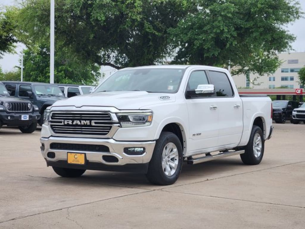 Recent Arrival! Certified. CARFAX One-Owner. Clean CARFAX. Ivory White Tri-Coat Pearlcoat 2022 Ram 1500 Laramie Laramie 8-Speed Automatic HEMI 5.7L V8 Multi Displacement VVT 4WD Laramie Level I Equipment Group (2nd Row In Floor Storage Bins, Auto High Beam Headlamp Control, Blind Spot & Cross Path Detection, Foam Bottle Insert (Door Trim Panel), ParkSense Front/Rear Park Assist w/Stop, Rain Sensitive Windshield Wipers, and Remote Tailgate Release), Quick Order Package 25H Laramie, Trailer Tow Group (Trailer Brake Control, Trailer Light Check, Trailer Reverse Steering Control, and Trailer Tire Pressure Monitoring System), FCA US LLC Certified Pre-Owned Certified, #1 Seat Foam Cushion, 10 Speakers, 3 Rear Seat Head Restraints, 3.21 Rear Axle Ratio, 4 Way Front Headrests, 4-Wheel Disc Brakes, 48V Belt Starter Generator, 4G LTE Wi-Fi Hot Spot, 8.4" Touchscreen Display, ABS brakes, Adjustable pedals, Air Conditioning, All R1 High Radios, All Radio Equipped Vehicles, Alloy wheels, AM/FM radio: SiriusXM, Anti-Spin Differential Rear Axle, Apple CarPlay, Apple CarPlay/Android Auto, Audio memory, Auto-dimming door mirrors, Auto-Dimming Exterior Driver Mirror, Auto-dimming Rear-View mirror, Automatic temperature control, Brake assist, Bumpers: chrome, Chrome Exterior Mirrors, Compass, Connected Travel & Traffic Services, Connectivity - US/Canada, Convex Wide-Angle Mirror Insert, Delay-off headlights, Disassociated Touchscreen Display, Driver door bin, Driver Seat Memory, Driver vanity mirror, Dual front impact airbags, Dual front side impact airbags, Electronic Stability Control, Exterior Mirrors Courtesy Lamps, Exterior Mirrors w/Heating Element, Exterior Mirrors w/Memory, Exterior Mirrors w/Supplemental Signals, For Details, Visit DriveUconnect.com, For More Info, Call 800-643-2112, Front anti-roll bar, Front Center Armrest w/Storage, Front dual zone A/C, Front fog lights, Front License Plate Bracket, Front reading lights, Front Seat Back Map Pockets, Front wheel independent suspension, Fully automatic headlights, Garage door transmitter, Global Telematics Box Module (TBM), Google Android Auto, GPS Antenna Input, GPS Navigation, HD Radio, Heated door mirrors, Heated Front Seats, Heated front seats, Heated Steering Wheel, Heated steering wheel, Illuminated entry, Integrated Center Stack Radio, Integrated Voice Command w/Bluetooth, Leather steering wheel, Leather Trim 40/20/40 Bench Seat, Low tire pressure warning, Memory seat, Occupant sensing airbag, Outside temperature display, Overhead airbag, Overhead console, Panic alarm, ParkView Rear Back-Up Camera, Passenger door bin, Passenger vanity mirror, Pedal memory, Power 2-Way Driver Lumbar Adjust, Power 2-Way Passenger Lumbar Adjust, Power 8-Way Driver & Passenger Seats, Power door mirrors, Power driver seat, Power passenger seat, Power steering, Power windows, Power-Folding Mirrors, Radio data system, Radio: Uconnect 5 Nav w/8.4" Display, Radio: Uconnect 5 W w/8.4" Display, Rear 60/40 Folding Seat, Rear anti-roll bar, Rear seat center armrest, Rear step bumper, Rear window defroster, Remote keyless entry, Security system, SiriusXM Radio Service, SiriusXM w/360L, Speed control, Split folding rear seat, Steering wheel mounted audio controls, Tachometer, Telescoping steering wheel, Tilt steering wheel, Traction control, Trip computer, Turn signal indicator mirrors, USB Host Flip, Variably intermittent wipers, Ventilated Front Seats, Ventilated front seats, Voltmeter, and Wheels: 18" x 8" Aluminum Base PainteD.