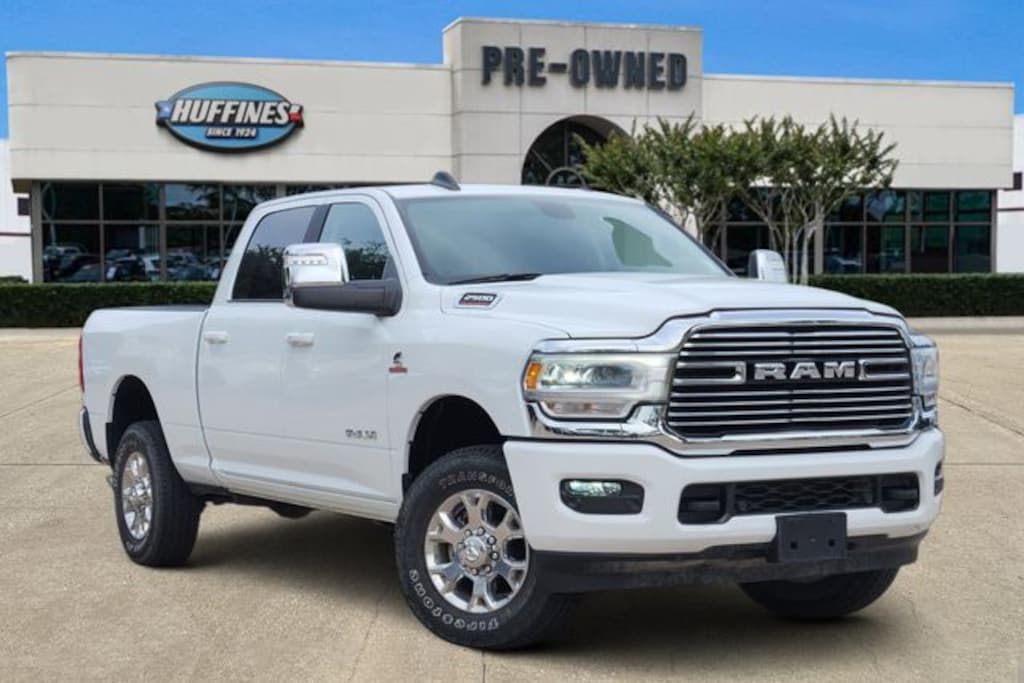 Certified. CARFAX One-Owner. Clean CARFAX. Bright White Clearcoat 2024 Ram 2500 Laramie Laramie 6-Speed Automatic Cummins 6.7L I6 Turbodiesel 4WD Laramie Level 1 Equipment Group (12" Touchscreen Display, 2nd Row In Floor Storage Bins, 4G LTE Wi-Fi Hot Spot, Alexa Built-In, Apple CarPlay, Auto Adjust In Reverse Exterior Mirrors, Auto Dim Exterior Mirror, Auto High Beam Headlamp Control, Auto Power-Folding Mirrors, Auto-Dimming Exterior Passenger Mirror, Blind Spot & Cross Path Detection, Center Hub, Chrome Exterior Mirrors, Connected Travel & Traffic Services, Connectivity - US/Canada, Disassociated Touchscreen Display, Exterior Mirrors Courtesy Lamps, Exterior Mirrors w/Heating Element, Exterior Mirrors w/Memory, Exterior Mirrors w/Supplemental Signals, Foam Bottle Insert (Door Trim Panel), For Details, Visit DriveUconnect.com, For More Info, Call 800-643-2112, Forward & Reverse Utility Lights, Front LED Fog Lamps, Global Telematics Box Module (TBM), Google Android Auto, GPS Antenna Input, GPS Navigation, HD Radio, Integrated Voice Command w/Bluetooth, LED Reflector Headlamps, LED Tail Lamps, Mirror Running Lights, Off-Road Information Pages, ParkSense Front/Rear Park Assist System, Power Adjust Mirrors, Power Adjustable Convex Aux Mirrors, Power Adjustable Pedals w/Memory, Power Heated Fold Telescopic Mirrors w/Memory, Power Telescoping Mirrors, Radio: Uconnect 5 Nav w/12.0" Display, Rain Sensitive Windshield Wipers, Rear Power Sliding Window, Rear Window Defroster, Remote Tailgate Release, Selectable Tire Fill Alert, SiriusXM Radio Service, SiriusXM w/360L, Trailer Tow Pages, and Wheels: 18" x 8.0" Polished Aluminum), Quick Order Package 2HH Laramie, FCA US LLC Certified Pre-Owned Certified, 10 Speakers, 115V Auxiliary Rear Power Outlet, 2 Way Rear Headrest Seat, 220 Amp Alternator, 3.73 Axle Ratio, 4 Way Front Headrests, 4-Wheel Disc Brakes, ABS brakes, Active Noise Control System, Air Conditioning, Alloy wheels, AM/FM radio: SiriusXM with 360L, Apple CarPlay/Android Auto, Automatic temperature control, Brake assist, Bumpers: body-color, Compass, Delay-off headlights, Driver door bin, Driver vanity mirror, Dual front impact airbags, Dual front side impact airbags, Electronic Stability Control, Electronically Controlled Throttle, Front anti-roll bar, Front Center Armrest w/Storage, Front dual zone A/C, Front License Plate Bracket, Front reading lights, Front Seat Back Map Pockets, Fully automatic headlights, Garage door transmitter, Heated door mirrors, Heated Front Seats, Heated front seats, Heated Steering Wheel, Heated steering wheel, Illuminated entry, Leather steering wheel, Leather Trim 40/20/40 Bench Seat, Low tire pressure warning, Manufacturer's Statement of Origin, Navigation System, Occupant sensing airbag, Outside temperature display, Overhead airbag, Overhead console, Panic alarm, ParkView Rear Back-Up Camera, Passenger door bin, Passenger vanity mirror, Power 2-Way Driver Lumbar Adjust, Power 2-Way Passenger Lumbar Adjust, Power Adjust 8-Way Driver Seat, Power Adjust 8-Way Front Passenger Seat, Power door mirrors, Power driver seat, Power passenger seat, Power steering, Power windows, Radio data system, Rear 60/40 Folding Seat, Rear anti-roll bar, Rear reading lights, Rear seat center armrest, Rear step bumper, Rear window defroster, Remote keyless entry, Security system, Speed control, Split folding rear seat, Steering wheel mounted audio controls, Tachometer, Tilt steering wheel, Tip Start, Tow Hooks, Traction control, Trip computer, Turn signal indicator mirrors, Variably intermittent wipers, and VoltmeteR.
