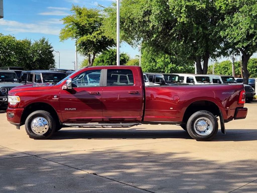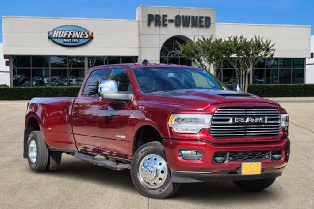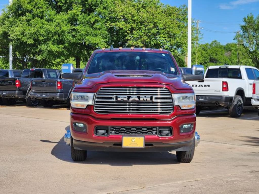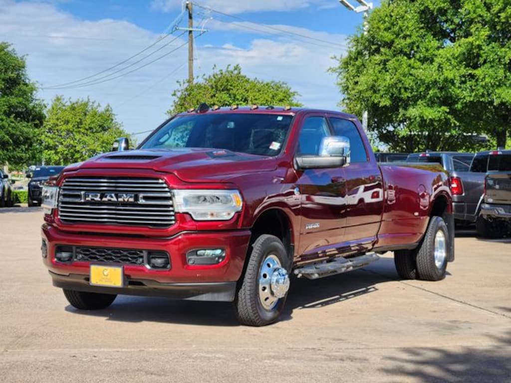 Certified. CARFAX One-Owner. Clean CARFAX. Delmonico Red Pearlcoat 2024 Ram 3500 Laramie Laramie Aisin 6-Speed Automatic 6.7L I6 4WD Laramie Level 1 Equipment Group (12" Touchscreen Display, 18" x 8" Polished Aluminum Wheels, 2nd Row In Floor Storage Bins, 4G LTE Wi-Fi Hot Spot, Alexa Built-In, Apple CarPlay, Auto Adjust In Reverse Exterior Mirrors, Auto Dimming Exterior Passenger Mirror, Auto High Beam Headlamp Control, Auto Power-Folding Mirrors, Auto-Dimming Exterior Mirrors, Blind Spot & Cross Path Detection, Center Hub, Chrome Exterior Mirrors, Connected Travel & Traffic Services, Connectivity - US/Canada, Disassociated Touchscreen Display, Exterior Mirrors Courtesy Lamps, Exterior Mirrors w/Heating Element, Exterior Mirrors w/Memory, Exterior Mirrors w/Supplemental Signals, Foam Bottle Insert (Door Trim Panel), For Details Visit DriveUconnect.com, For More Info, Call 800-643-2112, Forward & Reverse Utility Lights, Front LED Fog Lamps, Global Telematics Box Module (TBM), Google Android Auto, GPS Antenna Input, GPS Navigation, HD Radio, Integrated Voice Command w/Bluetooth, LED Reflector Headlamps, LED Tail Lamps, Mirror Running Lights, Off-Road Information Pages, ParkSense Front/Rear Park Assist System, Power Adjust Mirrors, Power Adjustable Pedals w/Memory, Power Heat Fold Memory Telescopic Mirrors, Power Telescoping Mirrors, Power-Adjustable Convex Aux Mirrors, Radio: Uconnect 5 Nav w/12.0" Display, Rain Sensitive Windshield Wipers, Rear Power Sliding Window, Rear Window Defroster, Remote Tailgate Release, Selectable Tire Fill Alert, SiriusXM Radio Service, SiriusXM w/360L, and Trailer Tow Pages), Protection Group, Quick Order Package 21H Laramie, Sport Appearance Package (20" x 8" Polished Aluminum Wheels, Black Interior Accents, Body Color Grille Surround, Sport Decal, and Sport Performance Hood), FCA US LLC Certified Pre-Owned Certified, 10 Speakers, 115V Auxiliary Rear Power Outlet, 2 Way Rear Headrest Seat, 220 Amp Alternator, 3.73 Axle Ratio, 4 Way Front Headrests, 4-Wheel Disc Brakes, 50 Gallon Fuel Tank, 5th Wheel/Gooseneck Towing Prep Group, 6000# Front Axle w/Hub Ext, 8.4" Touchscreen Display, ABS brakes, Active Noise Control System, Air Conditioning, Alloy wheels, AM/FM radio: SiriusXM with 360L, Apple CarPlay/Android Auto, Auto-dimming Rear-View mirror, Automatic temperature control, Box & Rear Fender Clearance Lamps, Brake assist, Bumpers: body-color, Clearance Lamps, Compass, Delay-off headlights, Driver door bin, Driver vanity mirror, Dual front impact airbags, Dual front side impact airbags, Dual Rear Wheels, Electronic Stability Control, Electronically Controlled Throttle, Folding Flat Load Floor Storage, Front anti-roll bar, Front Center Armrest w/Storage, Front dual zone A/C, Front License Plate Bracket, Front reading lights, Front Seat Back Map Pockets, Fully automatic headlights, Garage door transmitter, Heated door mirrors, Heated Front Seats, Heated front seats, Heated Steering Wheel, Heated steering wheel, High Back Seats, Illuminated entry, Integrated Center Stack Radio, Leather steering wheel, Leather Trim 40/20/40 Bench Seat, Low tire pressure warning, MOPAR Front & Rear Rubber Floor Mats, Navigation System, Occupant sensing airbag, Outside temperature display, Overhead airbag, Overhead console, Panic alarm, ParkView Rear Back-Up Camera, Passenger door bin, Passenger vanity mirror, Power 8-Way Adjustable Passenger Seat, Power Adjust 8-Way Driver Seat, Power door mirrors, Power driver seat, Power passenger seat, Power steering, Power windows, Radio data system, Radio: Uconnect 5 Nav w/8.4" Display, Rear 60/40 Folding Seat, Rear reading lights, Rear seat center armrest, Rear step bumper, Remote keyless entry, Security system, Speed control, Split folding rear seat, Steering wheel mounted audio controls, Tachometer, Tilt steering wheel, Tip Start, Traction control, Trip computer, Turn signal indicator mirrors, Variably intermittent wipers, Voltmeter, Wheels: 17" x 6.0" Polished Aluminum, and Whee