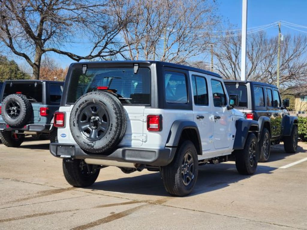 Bright White Clearcoat Sport 4WD 8-Speed Automatic 3.6L V6 24V VVT Quick Order Package 24B Sport, 12.3" Touchscreen Display, 3.45 Overall Top Gear Ratio, 4-Wheel Disc Brakes, 4G LTE Wi-Fi Hot Spot, 8 Speakers, ABS brakes, Air Conditioning, AM/FM radio: SiriusXM with 360L, Apple CarPlay, Apple CarPlay/Android Auto, Aux Battery, Black 3-Piece Hard Top, Brake assist, Compass, Connectivity - US/Canada, Delay-off headlights, Driver door bin, Driver vanity mirror, Dual front impact airbags, Dual front side impact airbags, Electronic Stability Control, For More Info, Call 800-643-2112, Freedom Panel Storage Bag, Front anti-roll bar, Front Bucket Seats, Front Center Armrest w/Storage, Front fog lights, Front reading lights, Google Android Auto, Illuminated entry, Integrated Center Stack Radio, Integrated roll-over protection, Jeep Trail Rated Kit, Low tire pressure warning, MOPAR All-Weather Floor Mats, No Soft Top, Non-Lock Fuel Cap Without Discriminator, Normal Duty Suspension, Occupant sensing airbag, Outside temperature display, Overhead airbag, Panic alarm, ParkView Rear Back-Up Camera, Passenger door bin, Passenger vanity mirror, Power steering, Power windows, Radio data system, Radio: Uconnect 5 with 12.3" Display, Rear anti-roll bar, Rear reading lights, Rear Window Defroster, Rear Window Wiper/Washer, Remote keyless entry, SiriusXM Radio Service, SiriusXM with 360L, Speed control, Split folding rear seat, Steering wheel mounted audio controls, Stop-Start Dual Battery System, Tachometer, Telescoping steering wheel, Tilt steering wheel, Traction control, Trip computer, Variably intermittent wipers, and Wheels: 17" x 7.5" Black Steel Styled.