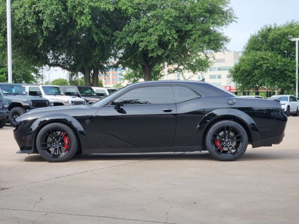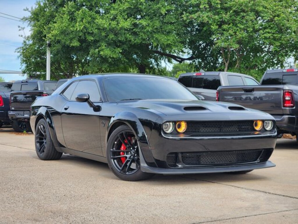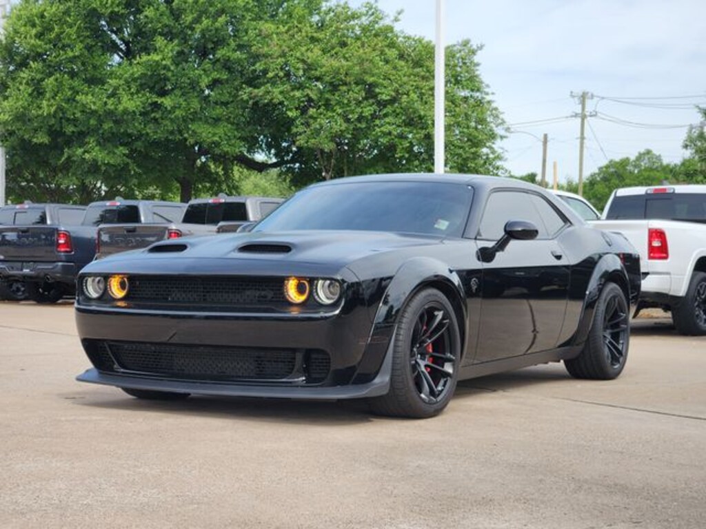 Clean CARFAX. Pitch Black Clearcoat 2022 Dodge Challenger SRT Hellcat Widebody SRT Hellcat Widebody 8-Speed Automatic 6.2L V8 Supercharged RWD Alcantara Appearance Package (Alcantara/Laguna Seats w/Logo, Heated Front Seats, Heated Steering Wheel, Power Tilt/Telescope Steering Column, Premium-Stitched Dash Panel, Radio/Driver Seat/Mirrors Memory, Red LED Alcantara Steering Wheel, Suede Door Trim Panel w/Map Pocket, and Ventilated Front Seats), Carbon/Suede Interior Package (Real Carbon Fiber Interior Accents and Suede Headliner), Driver Convenience Group (Blind Spot & Cross Path Detection, Body Color Exterior Mirrors, Exterior Mirrors w/Heating Element, High-Intensity Discharge Headlamps, and Power Multi-Function Foldaway Mirrors), harman/kardon Audio Group w/Subwoofer (18 Speakers Premium Audio System, harman/kardon GreenEdge Amp, Surround Sound, and Trunk Mounted Subwoofer), Plus Package (Dark Engine Turn Interior Accents and Hellcat Logo Nappa/Alcantara Seat), Quick Order Package 26E SRT Hellcat Widebody (Wheels: 20" x 11.0" Carbon Black Aluminum, Widebody Competition Suspension, and Widebody Fender Flares), SRT Black Package (Satin Black Dodge Tail Lamp Badge), 1-Yr SiriusXM Guardian Trial, 4-Wheel Disc Brakes, 4G LTE Wi-Fi Hot Spot, 5-Year SiriusXM Traffic Service, 5-Year SiriusXM Travel Link Service, 6 Speakers, 8.4" Touchscreen Display, ABS brakes, Adaptive suspension, Air Conditioning, All Radio Equipped Vehicles, Alloy wheels, AM/FM radio: SiriusXM, Anti-whiplash front head restraints, Apple CarPlay, Apple CarPlay/Android Auto, Auto-dimming Rear-View mirror, Automatic temperature control, Black Exterior Badging, Brake assist, Bumpers: body-color, Compass, Compass Gauge, Delay-off headlights, Demonic Red Seat Belts, Driver door bin, Driver vanity mirror, Dual front impact airbags, Dual front side impact airbags, Electronic Stability Control, Emergency communication system: SiriusXM Guardian, For Details, Visit DriveUconnect.com, Four wheel independent suspension, Front anti-roll bar, Front Bucket Seats, Front Center Armrest, Front dual zone A/C, Front reading lights, Fully automatic headlights, Garage door transmitter, Google Android Auto, GPS Antenna Input, GPS Navigation, HD Radio, Heated door mirrors, Heated front seats, Heated steering wheel, Illuminated entry, Integrated Center Stack Radio, Integrated Voice Command w/Bluetooth, Leather Shift Knob, Low tire pressure warning, Media Hub (2 USB, AUX), Outside temperature display, Overhead airbag, Overhead console, Painted Black Satin Hood, Panic alarm, ParkView Rear Back-Up Camera, Passenger door bin, Passenger vanity mirror, Power door mirrors, Power driver seat, Power steering, Power windows, Radio data system, Radio: Uconnect 4C Nav w/8.4" Display, Radio: Uconnect 4C w/8.4" Display, Rear anti-roll bar, Rear reading lights, Rear seat center armrest, Rear window defroster, Remote keyless entry, Security system, SiriusXM Satellite Radio, SiriusXM Traffic Plus, SiriusXM Travel Link, Speed control, Speed-sensing steering, Split folding rear seat, Spoiler, Sport steering wheel, SRT Hellcat Logo Houndstooth Seats, Steering wheel mounted audio controls, Tachometer, Telescoping steering wheel, Tilt steering wheel, Traction control, Trip computer, USB Host Flip, Variably intermittent wipers, and Wheels: 20" x 9.5" SRT Lowgloss Black PerformancE.