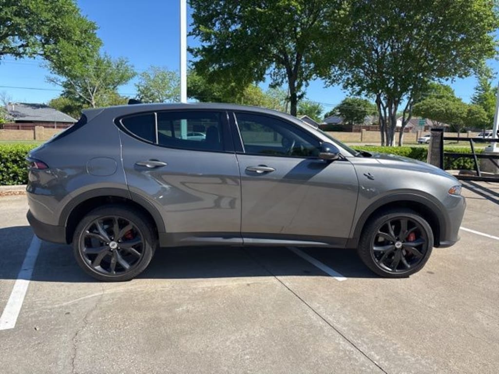 Certified. Gray Cray 2024 Dodge Hornet GT Plus GT Plus 9-Speed 948TE Automatic 2.0L I4 DOHC AWD GT Blacktop + Track Pack Bundle (Alcantara Seats w/Red Accents, Bright Pedals, Dark GT Badge, Dark Hornet Badge, Dual Mode Suspension, Gloss Black Painted Day Light Opening, Gloss Black Painted Mirror Caps, Power 4-Way Driver Lumbar Adjust, Power 4-Way Passenger Lumbar Adjust, Power Adjust 8-Way Driver Seat, Power Adjust 8-Way Front Passenger Seat, Red Brake Calipers, Sporty Leather Steering Wheel, Steel Door Sills, and Wheels: 20" x 8" Abyss Finish Aluminum), Quick Order Package 23L, FCA US LLC Certified Pre-Owned Certified, 4-Wheel Disc Brakes, 8 Speakers, ABS brakes, Air Conditioning, Alloy wheels, AM/FM radio: SiriusXM, Anti-whiplash front head restraints, Apple CarPlay/Android Auto, Auto High-beam Headlights, Auto-dimming Rear-View mirror, Brake assist, Bumpers: body-color, Compass, Delay-off headlights, Driver door bin, Driver vanity mirror, Dual front impact airbags, Dual front side impact airbags, Electronic Stability Control, Emergency communication system: Dodge Connect, Four wheel independent suspension, Front anti-roll bar, Front Bucket Seats, Front Center Armrest w/Storage, Front dual zone A/C, Front reading lights, Fully automatic headlights, Garage door transmitter, harman/kardon® Speakers, Heated door mirrors, Heated front seats, Heated steering wheel, Illuminated entry, Knee airbag, Lane Departure Warning System, Leather Seats, Leather steering wheel, Low tire pressure warning, Memory seat, Navigation System, Normal Duty Suspension, Occupant sensing airbag, Outside temperature display, Overhead airbag, Overhead console, Panic alarm, ParkView Rear Back-Up Camera, Passenger door bin, Passenger vanity mirror, Power door mirrors, Power driver seat, Power Liftgate, Power moonroof, Power passenger seat, Power steering, Power windows, Radio: Uconnect 5 Nav w/10.25" Display, Rain sensing wipers, Rear anti-roll bar, Rear seat center armrest, Rear window defroster, Rear window wiper, Remote keyless entry, Security system, Speed control, Speed-sensing steering, Split folding rear seat, Spoiler, Tachometer, TBD Axle Ratio, Telescoping steering wheel, Tilt steering wheel, Traction control, Trip computer, Turn signal indicator mirrors, Variably intermittent wipers, Ventilated Front Seats, Ventilated front seats, and Wheels: 17" x 7" Silver Aluminum.
