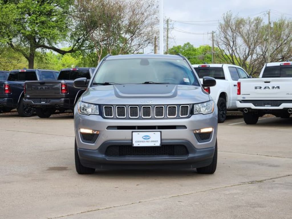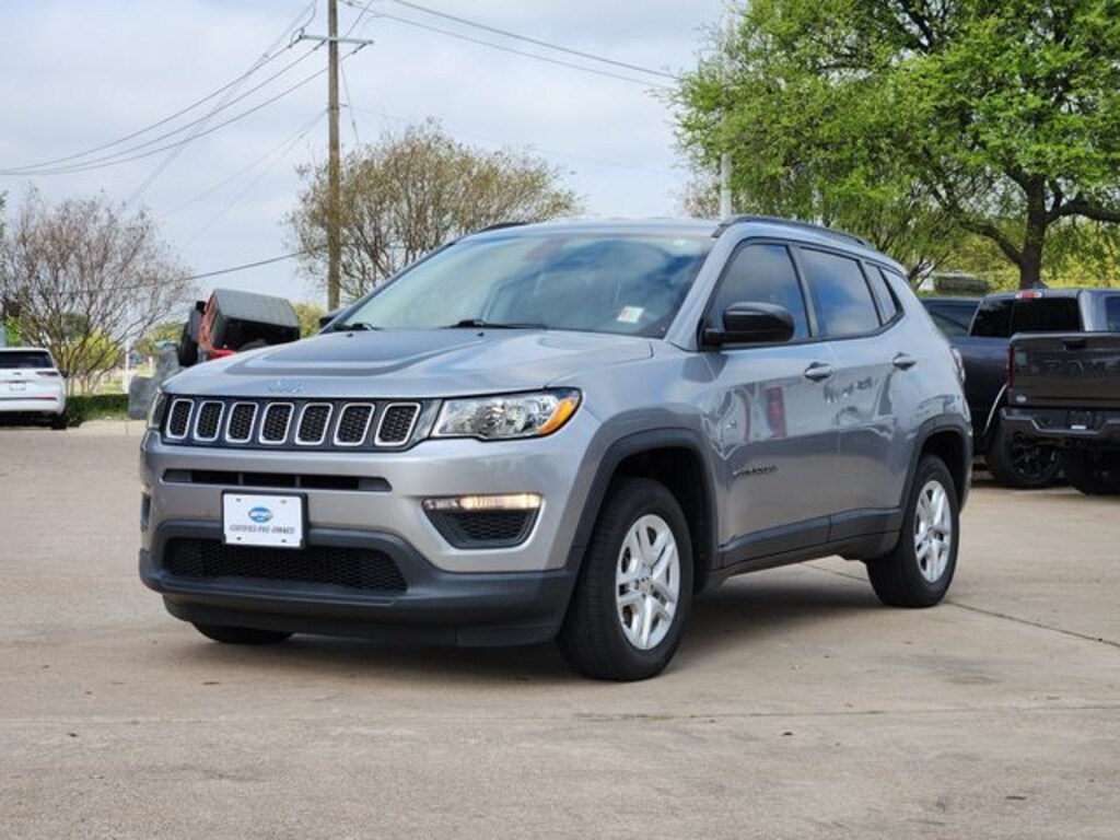 Clean CARFAX. Billet Silver Metallic Clearcoat 2018 Jeep Compass Sport Sport 6-Speed Aisin Automatic 2.4L I4 FWD MOPAR Graphics Package (MOPAR Bodyside Graphic and MOPAR Hood Graphic), Quick Order Package 28A, Sport Appearance Plus (Black Side Roof Rails, Deep Tint Sunscreen Glass, and Wheels: 16" x 6.5" Silver Painted Aluminum), Tech Group (1-Year SiriusXM Radio Service, 115V Auxiliary Power Outlet, 7.0" Touch Screen Display, Air Conditioning ATC w/Dual Zone Control, Apple CarPlay, Body Color Door Handles, Cluster 7.0" Color Driver Info Display, For More Info, Call 800-643-2112, Google Android Auto, GPS Antenna Input, Humidity Sensor, Integrated Center Stack Radio, ParkSense Rear Park Assist System, Premium Air Filter, Radio: Uconnect 4 w/7" Display, Remote Proximity Keyless Entry, SiriusXM Satellite Radio, and USB Host Flip), 3.833 Axle Ratio, 4-Wheel Disc Brakes, 6 Speakers, ABS brakes, Air Conditioning, AM/FM radio, Anti-whiplash front head restraints, Brake assist, Bumpers: body-color, Cloth Low-Back Bucket Seats, Compass, Delay-off headlights, Driver door bin, Driver vanity mirror, Dual front impact airbags, Dual front side impact airbags, Electronic Stability Control, Four wheel independent suspension, Front anti-roll bar, Front Bucket Seats, Front Center Armrest w/Storage, Front reading lights, Heated door mirrors, Illuminated entry, Knee airbag, Low tire pressure warning, Occupant sensing airbag, Outside temperature display, Overhead airbag, Overhead console, Panic alarm, ParkView Rear Back-Up Camera, Passenger door bin, Passenger vanity mirror, Power door mirrors, Power steering, Power windows, Radio: Uconnect 3 w/5" Display, Rear anti-roll bar, Rear seat center armrest, Rear window defroster, Rear window wiper, Remote keyless entry, Speed control, Split folding rear seat, Spoiler, Steering wheel mounted audio controls, Tachometer, Telescoping steering wheel, Tilt steering wheel, Traction control, Trip computer, Variably intermittent wipers, and Wheels: 16" x 6.5" Styled Black Steel.
