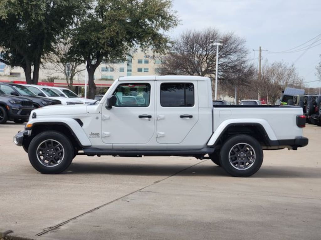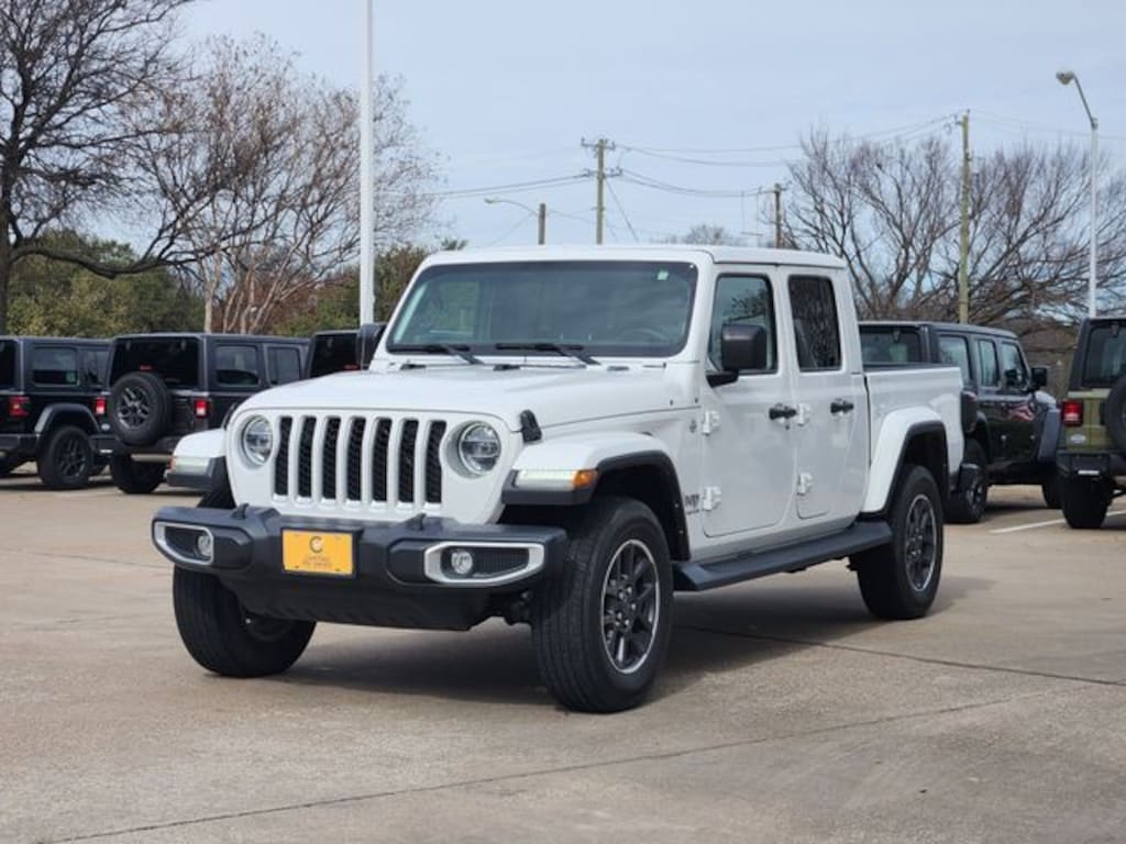 Certified. CARFAX One-Owner. Clean CARFAX. Bright White Clearcoat 2022 Jeep Gladiator Overland Overland 8-Speed Automatic 3.6L V6 24V VVT 4WD LED Lighting Group (Daytime Running Lamps LED Accents, Front LED Fog Lamps, LED Park Turn Lamps, LED Premium Reflector Headlamps, and LED Taillamps), Popular Equipment Package (#1 Seat Foam Cushion, Black 3-Piece Hard Top, Freedom Panel Storage Bag, Full Length Floor Console Premium Armrest, Leather Trimmed Bucket Seats, Leather Wrapped Park Brake Handle, Leather Wrapped Shift Knob, Premium Wrapped I/P Bezel, Rear Armrest w/Cupholder Seat, Rear Sliding Window, and Rear Window Defroster), Quick Order Package 23G, Quick Order Package 24G, Trailer Tow Package (240 Amp Alternator, Class IV Receiver Hitch, Heavy-Duty Engine Cooling, and Trailer Hitch Zoom), FCA US LLC Certified Pre-Owned Certified, 110 MPH Vehicle Max Speed Calibration, 3.73 Rear Axle Ratio, 4-Wheel Disc Brakes, 9 Speakers, ABS brakes, Air Conditioning, Alloy wheels, AM/FM radio: SiriusXM, Apple CarPlay/Android Auto, Auto-dimming Rear-View mirror, Automatic temperature control, Body Color 3-Piece Hard Top, Brake assist, Compass, Corning Gorilla Glass, Delay-off headlights, Driver door bin, Driver vanity mirror, Dual front impact airbags, Dual front side impact airbags, Electronic Stability Control, Emergency communication system: SiriusXM Guardian, Front anti-roll bar, Front Bucket Seats, Front Center Armrest w/Storage, Front dual zone A/C, Front fog lights, Front License Plate Bracket, Front reading lights, Fully automatic headlights, Garage door transmitter, Heated door mirrors, Illuminated entry, Integrated roll-over protection, Leather steering wheel, Low tire pressure warning, MOPAR All-Weather Slush Mats, MOPAR Hardtop Headliner, Navigation System, No Soft Top, Normal Duty Plus Suspension, Occupant sensing airbag, Outside temperature display, Overland Cloth Bucket Seats, Panic alarm, ParkView Rear Back-Up Camera, Passenger door bin, Passenger vanity mirror, Power door mirrors, Power steering, Power windows, Radio data system, Radio: Uconnect 4C Nav w/8.4" Display, Rear anti-roll bar, Rear reading lights, Remote keyless entry, Remote Start System, Security system, Speed control, Split folding rear seat, Steering wheel mounted audio controls, Tachometer, Telescoping steering wheel, Tilt steering wheel, Traction control, Trip computer, Variably intermittent wipers, Voltmeter, and Wheels: 18" x 7.5" Granite Crystal Aluminum.