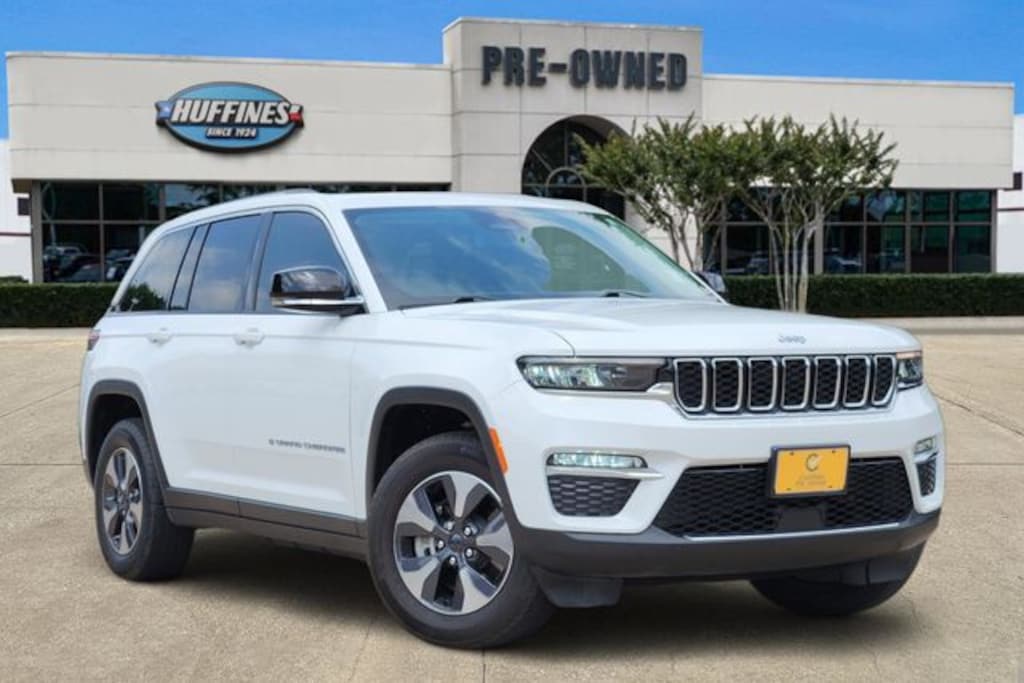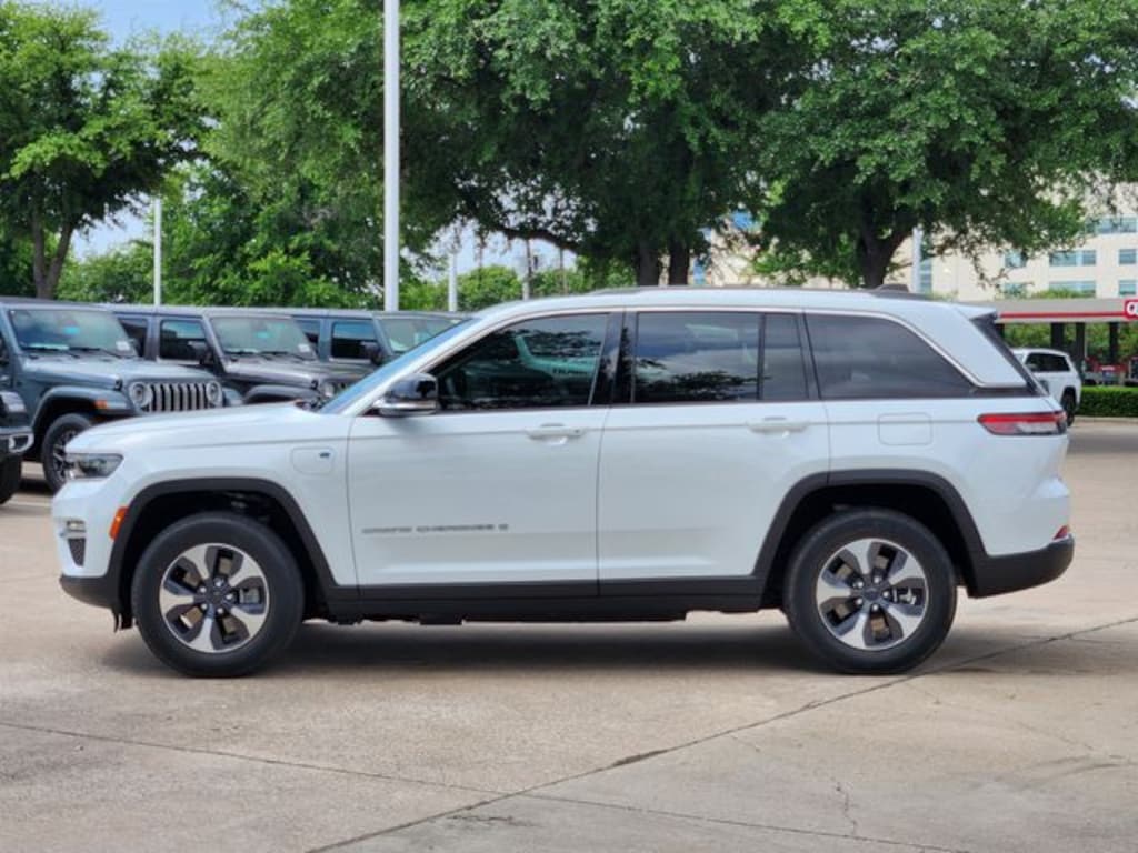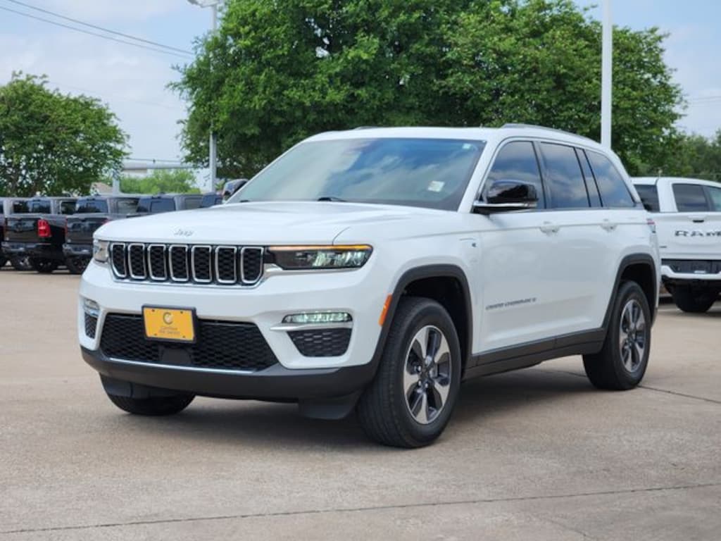 Certified. CARFAX One-Owner. Clean CARFAX. Bright White Clearcoat 2023 Jeep Grand Cherokee 4xe 4xe 8-Speed Automatic 2.0L I4 DOHC 4WD Quick Order Package 27F, FCA US LLC Certified Pre-Owned Certified, 2.0L I4 DOHC, 4WD, 10 Speakers, 3.70 Rear Axle Ratio, 4-Wheel Disc Brakes, ABS brakes, Air Conditioning, Alloy wheels, AM/FM radio: SiriusXM with 360L, Anti-whiplash front head restraints, Audio memory, Auto High-beam Headlights, Automatic temperature control, Brake assist, Bumpers: body-color, Capri Leatherette Seats, Compass, Delay-off headlights, Driver door bin, Driver vanity mirror, Dual front impact airbags, Dual front side impact airbags, Electronic Stability Control, Four wheel independent suspension, Front anti-roll bar, Front Bucket Seats, Front Center Armrest w/Storage, Front dual zone A/C, Front fog lights, Front License Plate Bracket, Front reading lights, Fully automatic headlights, Garage door transmitter, Heated door mirrors, Heated front seats, Heated rear seats, Heated steering wheel, Heavy Duty Suspension, Illuminated entry, Knee airbag, Low tire pressure warning, Memory seat, Navigation System, Occupant sensing airbag, Outside temperature display, Overhead airbag, Overhead console, Panic alarm, ParkView Rear Back-Up Camera, Passenger door bin, Passenger vanity mirror, Power door mirrors, Power driver seat, Power Liftgate, Power moonroof, Power passenger seat, Power steering, Power windows, Radio data system, Radio: Uconnect 5 Nav w/10.1" Display, Rear anti-roll bar, Rear reading lights, Rear window defroster, Rear window wiper, Remote keyless entry, Security system, Speed control, Speed-Sensitive Wipers, Split folding rear seat, Spoiler, Steering wheel mounted audio controls, Tachometer, Telescoping steering wheel, Tilt steering wheel, Traction control, Trip computer, Turn signal indicator mirrors, Variably intermittent wipers, Voltmeter, and Wheels: 18" x 8" Fully Painted Aluminum.