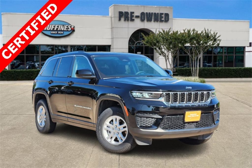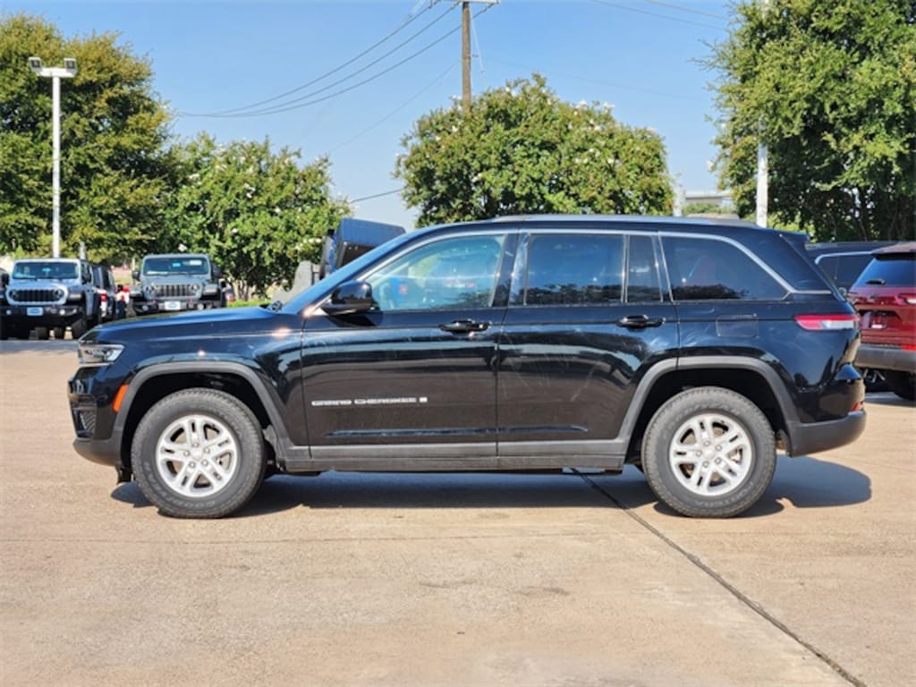 Clean CARFAX. Diamond Black Crystal Pearlcoat 2023 Jeep Grand Cherokee Laredo Laredo 8-Speed Automatic 3.6L V6 24V VVT 4WD Quick Order Package 22A Laredo, 4WD, 3.45 Rear Axle Ratio, 4-Wheel Disc Brakes, 6 Speakers, ABS brakes, Air Conditioning, Alloy wheels, Anti-whiplash front head restraints, Automatic temperature control, Brake assist, Bumpers: body-color, Cloth Seats, Compass, Delay-off headlights, Driver door bin, Driver vanity mirror, Dual front impact airbags, Dual front side impact airbags, Electronic Stability Control, Emergency communication system, Four wheel independent suspension, Front anti-roll bar, Front Bucket Seats, Front Center Armrest w/Storage, Front dual zone A/C, Front License Plate Bracket, Front reading lights, Fully automatic headlights, Heated door mirrors, Illuminated entry, Knee airbag, Low tire pressure warning, Molded In Color Black/Gloss Black Roof Rails, Normal Duty Suspension, Occupant sensing airbag, Outside temperature display, Overhead airbag, Overhead console, Panic alarm, ParkView Rear Back-Up Camera, Passenger door bin, Passenger vanity mirror, Power door mirrors, Power driver seat, Power steering, Power windows, Radio data system, Radio: Uconnect 5 w/8.4" Display, Rear anti-roll bar, Rear reading lights, Rear window defroster, Rear window wiper, Remote keyless entry, Security system, Speed control, Speed-Sensitive Wipers, Split folding rear seat, Spoiler, Steering wheel mounted audio controls, Tachometer, Telescoping steering wheel, Tilt steering wheel, Traction control, Trip computer, Variably intermittent wipers, Voltmeter, and Wheels: 17" x 6.5" Fully Painted Aluminum.