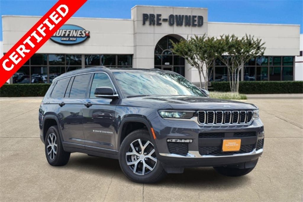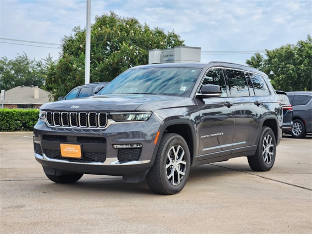 CARFAX One-Owner. Clean CARFAX. Baltic Gray Metallic Clearcoat 2024 Jeep Grand Cherokee L Limited Limited 8-Speed Automatic 3.6L V6 24V VVT 4WD Luxury Tech Group II (2nd Row Manual Window Shades, Auto-Dimming Exterior Driver Mirror, Capri Leatherette w/Axis II Seats, Integrated Off-Road Camera, Intersection Collision Assist System, Memory Steering Column, ParkSense Front/Rear Park Assist w/Stop, Passive Entry - Front/Rear Doors, Liftgate, Power Tilt/Telescope Steering Column, Rain Sensitive Windshield Wipers, Rear Back Up Camera Washer, Rearview Autodim Digital Display Mirror, Surround View Camera System, Ventilated Front Seats, and Wireless Charging Pad), Quick Order Package 23E, 3.45 Rear Axle Ratio, 3rd row seats: split-bench, 4-Wheel Disc Brakes, 6 Speakers, ABS brakes, Active Noise Control System, Air Conditioning, Alloy wheels, AM/FM radio: SiriusXM with 360L, Anti-whiplash front head restraints, Audio memory, Auto High-beam Headlights, Automatic temperature control, Brake assist, Bumpers: body-color, Capri Leatherette Seats, Compass, Delay-off headlights, Driver door bin, Driver vanity mirror, Dual front impact airbags, Dual front side impact airbags, Dual-Pane Panoramic Sunroof, Electronic Stability Control, Emergency communication system, Four wheel independent suspension, Front anti-roll bar, Front Bucket Seats, Front Center Armrest w/Storage, Front dual zone A/C, Front fog lights, Front License Plate Bracket, Front reading lights, Fully automatic headlights, Garage door transmitter, Heated door mirrors, Heated front seats, Heated rear seats, Heated steering wheel, Illuminated entry, Interior Rear Facing Camera, Knee airbag, Low tire pressure warning, Manual Fold Seatbacks, Memory seat, Navigation System, Normal Duty Suspension, Occupant sensing airbag, Outside temperature display, Overhead airbag, Overhead console, Panic alarm, ParkView Rear Back-Up Camera, Passenger door bin, Passenger vanity mirror, Power door mirrors, Power driver seat, Power Liftgate, Power passenger seat, Power steering, Power windows, Radio data system, Radio: Uconnect 5 Nav w/10.1" Display, Rear air conditioning, Rear anti-roll bar, Rear reading lights, Rear window defroster, Rear window wiper, Reclining 3rd row seat, Remote keyless entry, Security system, Speed control, Speed-Sensitive Wipers, Split folding rear seat, Spoiler, Steering wheel mounted audio controls, Tachometer, Telescoping steering wheel, Tilt steering wheel, Traction control, Trip computer, Turn signal indicator mirrors, Variably intermittent wipers, Voltmeter, and Wheels: 18" x 8.0" Polished/Painted Aluminum.