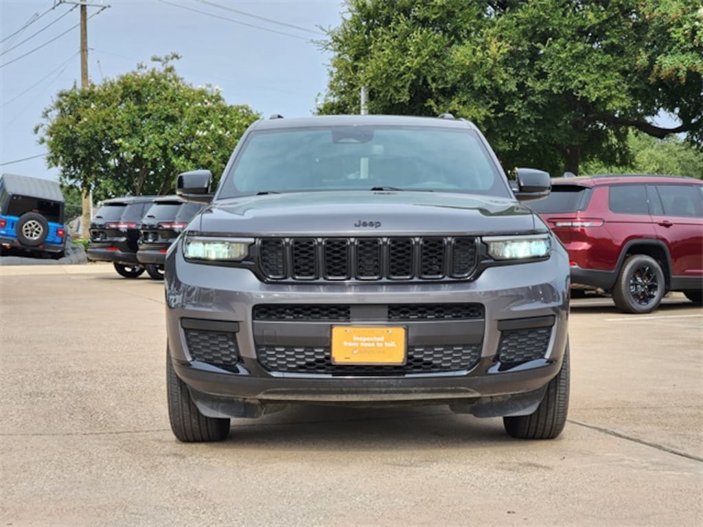 CARFAX One-Owner. Clean CARFAX. Baltic Gray Metallic Clearcoat 2024 Jeep Grand Cherokee L Altitude Altitude 8-Speed Automatic 3.6L V6 24V VVT 4WD Altitude Appearance Package, Quick Order Package 23B Altitude (115V Auxiliary Power Outlet, 3rd Row Charge-Only USB Ports, Black Headliner, Capri Leatherette/Suede Seats, Delete Laredo Badge, Gloss Black Exterior Accents, Heated Front Seats, Heated Steering Wheel, Power Liftgate, Rain Sensitive Windshield Wipers, Remote Start System, Selectable Tire Fill Alert, Wheels: 18" x 8.0" Fully Painted Aluminum 1, and Wireless Charging Pad), 2nd Row 60/40 Bench w/Manual Tip/Slide, 2nd Row Seat Center Armrest/Cupholders, 3 Rear Seat Head Restraints, 3.45 Rear Axle Ratio, 3rd row seats: split-bench, 4-Wheel Disc Brakes, 6 Speakers, 7-Passenger Seating, ABS brakes, Air Conditioning, Alloy wheels, Anti-whiplash front head restraints, Automatic temperature control, Brake assist, Bumpers: body-color, Center Rear 3-Point Seat Belt, Cloth Seats, Compass, Delay-off headlights, Driver door bin, Driver vanity mirror, Dual front impact airbags, Dual front side impact airbags, Electronic Stability Control, Emergency communication system, Four wheel independent suspension, Front anti-roll bar, Front Bucket Seats, Front Center Armrest w/Storage, Front dual zone A/C, Front License Plate Bracket, Front reading lights, Fully automatic headlights, Heated door mirrors, Illuminated entry, Knee airbag, Low tire pressure warning, Manual Fold Seatbacks, Normal Duty Suspension, Occupant sensing airbag, Outside temperature display, Overhead airbag, Overhead console, Panic alarm, ParkView Rear Back-Up Camera, Passenger door bin, Passenger vanity mirror, Power door mirrors, Power driver seat, Power steering, Power windows, Radio data system, Radio: Uconnect 5 w/8.4" Display, Rear air conditioning, Rear anti-roll bar, Rear reading lights, Rear window defroster, Rear window wiper, Reclining 3rd row seat, Remote keyless entry, Security system, Speed control, Speed-Sensitive Wipers, Split folding rear seat, Spoiler, Steering wheel mounted audio controls, Tachometer, Telescoping steering wheel, Tilt steering wheel, Traction control, Trip computer, Variably intermittent wipers, Voltmeter, and Wheels: 18" x 8.0" Fully Painted Aluminum.