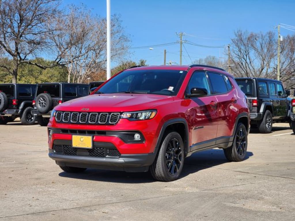 Certified. CARFAX One-Owner. Clean CARFAX. Red 2026 Jeep Compass Latitude Latitude 8-Speed Automatic 2.0L I4 DOHC 4WD Quick Order Package 29N Altitude (10.1" Touchscreen Display, Altitude Special Edition, Black Day Light Opening Moldings, Gloss Black Surround/Neutral Gray Rings, Neutral Gray Exterior Badging, Piano Black Interior Accents, Sliding Sun Visors with Illuminated Mirrors, and Wheels: 18" x 7" Gloss Black Painted Aluminum), FCA US LLC Certified Pre-Owned Certified, 4WD, 17" x 7" Aluminum Wheels, 3.73 Final Drive Ratio, 4-Wheel Disc Brakes, 4G LTE Wi-Fi Hot Spot, 6 Speakers, ABS brakes, Air Conditioning, AM/FM radio: SiriusXM, Auto High-beam Headlights, Automatic temperature control, Bluetooth Handsfree Phone and Audio, Brake assist, Bumpers: body-color, Compass, Delay-off headlights, Driver door bin, Driver vanity mirror, Dual front impact airbags, Dual front side impact airbags, Electronic Stability Control, Emergency communication system: SiriusXM Guardian, Four wheel independent suspension, Front anti-roll bar, Front Bucket Seats, Front Center Armrest w/Storage, Front fog lights, Front License Plate Bracket, Front reading lights, Fully automatic headlights, Global Telematics Box Module, Heated door mirrors, Heated front seats, Heated steering wheel, Illuminated entry, Knee airbag, Leather Shift Knob, Leather steering wheel, Low tire pressure warning, Occupant sensing airbag, Outside temperature display, Overhead airbag, Overhead console, Panic alarm, ParkView Rear Back-Up Camera, Passenger door bin, Passenger vanity mirror, Power door mirrors, Power steering, Power windows, Premium audio system: UConnect 5, Premium Cloth/Vinyl Bucket Seats, Radio: Uconnect 5 with 8.4" Display, Rear anti-roll bar, Rear seat center armrest, Rear window defroster, Rear window wiper, Remote keyless entry, Security system, SiriusXM Satellite Radio, Speed control, Split folding rear seat, Spoiler, Steering wheel mounted audio controls, Tachometer, Telescoping steering wheel, Tilt steering wheel, Traction control, Trip computer, and Variably intermittent wipers.