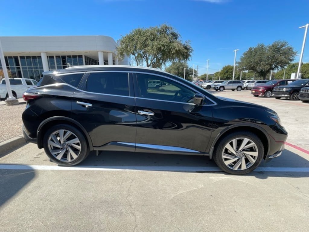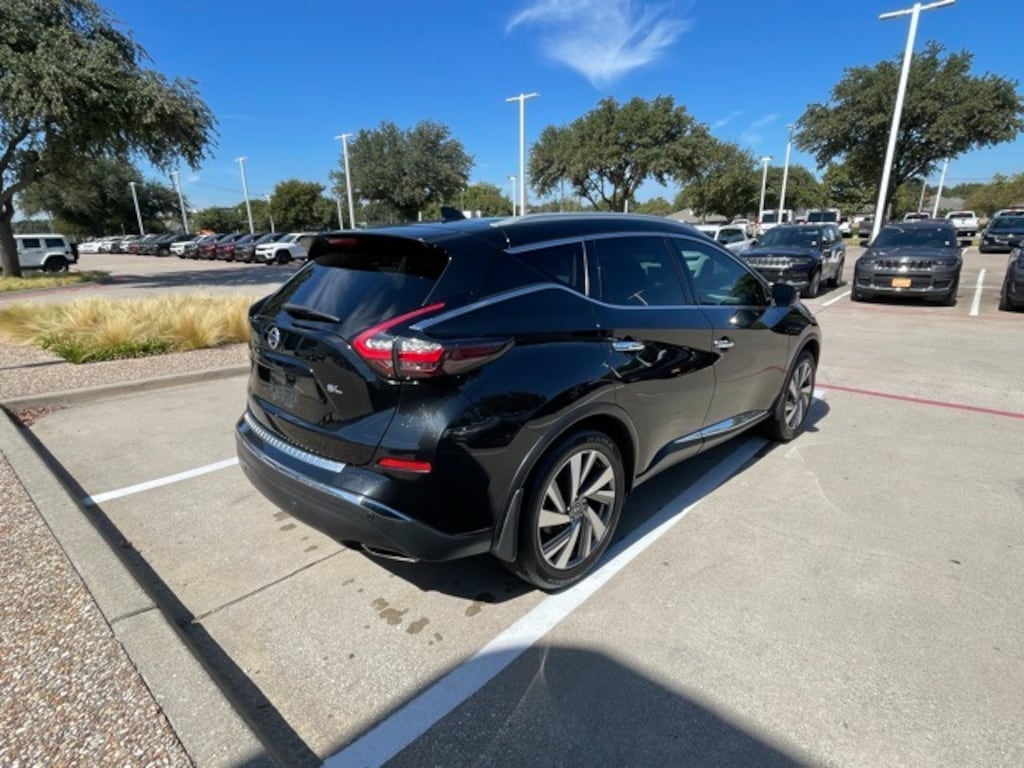 Recent Arrival! Clean CARFAX. Magnetic Black Pearl 2021 Nissan Murano SL SL CVT with Xtronic 3.5L V6 DOHC 24V FWD Cargo Package (Cargo Area Protector, Cargo Net, First Aid Kit, and Retractable Cargo Cover), CVT with Xtronic, 11 Speakers, 4-Wheel Disc Brakes, 4.667 Axle Ratio, ABS brakes, Air Conditioning, Alloy wheels, AM/FM radio: SiriusXM, AM/FM/CD/MP3/WMA Audio System, Auto High-beam Headlights, Auto-dimming Rear-View mirror, Automatic temperature control, Blind Spot Warning, Brake assist, Bumpers: body-color, Carpeted Floor Mats & Carpeted Cargo Mat, CD player, Child-Seat-Sensing Airbag, Delay-off headlights, Driver door bin, Driver vanity mirror, Dual front impact airbags, Dual front side impact airbags, Electronic Stability Control, Exterior Accent Lighting, Exterior Parking Camera Rear, Four wheel independent suspension, Front anti-roll bar, Front Bucket Seats, Front Center Armrest, Front dual zone A/C, Front fog lights, Front reading lights, Fully automatic headlights, Garage door transmitter: HomeLink, Heated door mirrors, Heated Front Bucket Seats, Heated front seats, Heated rear seats, Heated steering wheel, Illuminated entry, Illuminated Kick Plates, Illuminated Kick Plates (PIO), Knee airbag, Leather-Appointed Seat Trim, Low tire pressure warning, Memory seat, Navigation system: NissanConnect Navigation, NissanConnect featuring Apple CarPlay and Android Auto, Occupant sensing airbag, Outside temperature display, Overhead airbag, Overhead console, Panic alarm, Passenger door bin, Passenger vanity mirror, Power door mirrors, Power driver seat, Power Liftgate, Power passenger seat, Power steering, Power windows, Radio data system, Rear anti-roll bar, Rear Bumper Protector, Rear reading lights, Rear seat center armrest, Rear side impact airbag, Rear window defroster, Rear window wiper, Remote keyless entry, Roof rack: rails only, Security system, Speed control, Speed-sensing steering, Speed-Sensitive Wipers, Splash Guards, Split folding rear seat, Spoiler, Steering wheel mounted audio controls, Tachometer, Telescoping steering wheel, Tilt steering wheel, Traction control, Trip computer, Turn signal indicator mirrors, Variably intermittent wipers, and Wheels: 20" Machined Aluminum-Alloy.