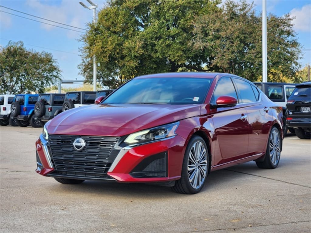 CARFAX One-Owner. Scarlet Ember 2024 Nissan Altima 2.5 SL 2.5 SL CVT with Xtronic 2.5L 4-Cylinder DOHC 16V FWD CVT with Xtronic, 19" Unique Alloy Wheels, 4-Wheel Disc Brakes, 9 Speakers, ABS brakes, Air Conditioning, Alloy wheels, AM/FM radio: SiriusXM, Auto High-beam Headlights, Automatic temperature control, Blind Spot Warning, Body-Colored Splash Guards, Brake assist, Bumpers: body-color, Compass, Delay-off headlights, Driver door bin, Driver vanity mirror, Dual front impact airbags, Dual front side impact airbags, Electronic Stability Control, Emergency communication system: NissanConnect Services, Floor Mats/Trunk Mat/Hideaway Net, Four wheel independent suspension, Front anti-roll bar, Front Bucket Seats, Front Center Armrest, Front dual zone A/C, Front reading lights, Fully automatic headlights, Heated Front Bucket Seats, Heated front seats, Heated steering wheel, Illuminated entry, Illuminated Kick Plates, Knee airbag, Leather Shift Knob, Leather steering wheel, Leather-Appointed Seat Trim, Low tire pressure warning, Navigation System, NissanConnect featuring Apple CarPlay, Occupant sensing airbag, Outside temperature display, Overhead airbag, Overhead console, Panic alarm, Passenger door bin, Passenger vanity mirror, Power door mirrors, Power driver seat, Power moonroof, Power passenger seat, Power steering, Power windows, Radio data system, Radio: AM/FM w/Bose Premium Sound System, Rear anti-roll bar, Rear Parking Sensors, Rear reading lights, Rear seat center armrest, Rear side impact airbag, Rear window defroster, Remote keyless entry, Security system, Speed control, Speed-sensing steering, Speed-Sensitive Wipers, Split folding rear seat, Steering wheel mounted audio controls, Tachometer, Telescoping steering wheel, Tilt steering wheel, Traction control, Trip computer, Trunk Organizer Tray, Turn signal indicator mirrors, and Variably intermittent wipers.