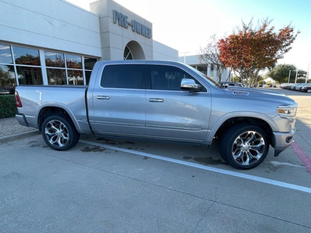 Recent Arrival! CARFAX One-Owner. Billet Silver Metallic Clearcoat 2019 Ram 1500 Limited Limited 8-Speed Automatic HEMI 5.7L V8 Multi Displacement VVT 4WD Bed Utility Group (4 Adjustable Cargo Tie-Down Hooks and Pick-Up Box Lighting), Body Color Bumper Group (Body Color Front Bumper and Body Color Rear Bumper w/Step Pads), Limited Level 1 Equipment Group (Adaptive Cruise Control w/Stop & Go, Advanced Brake Assist, Full Speed Forward Collision Warning Plus, harman/kardon 19 Speaker Premium Sound, Lane Keep Assist, Parallel & Perp Park Assist w/Stop, and Ventilated Rear Seats), Protection Group, Quick Order Package 27M Limited, 1-Yr SiriusXM Guardian Trial, 10 Speakers, 12" Touchscreen Display, 3.21 Rear Axle Ratio, 3.92 Rear Axle Ratio, 4-Wheel Disc Brakes, 48V Belt Starter Generator, ABS brakes, Adjustable pedals, Air Conditioning, Alloy wheels, AM/FM radio: SiriusXM with 360L, Anti-Spin Differential Rear Axle, Apple CarPlay, Apple CarPlay/Android Auto, Audio memory, Auto High-beam Headlights, Auto-dimming door mirrors, Auto-dimming Rear-View mirror, Auto-leveling suspension, Automatic temperature control, Bodyside moldings, Brake assist, Bumpers: chrome, Compass, Delay-off headlights, Disassociated Touchscreen Display, Dome Dual LED Reading Lamp, Driver door bin, Driver vanity mirror, Dual front impact airbags, Dual front side impact airbags, Dual-Pane Panoramic Sunroof, Electronic Stability Control, Emergency communication system: SiriusXM Guardian, Front anti-roll bar, Front Bucket Seats, Front Center Armrest w/Storage, Front dual zone A/C, Front fog lights, Front reading lights, Front wheel independent suspension, Fully automatic headlights, Garage door transmitter, Genuine wood console insert, Genuine wood dashboard insert, Genuine wood door panel insert, Google Android Auto, GPS Antenna Input, GPS Navigation, HD Radio, Heated door mirrors, Heated front seats, Heated rear seats, Heated steering wheel, Illuminated entry, Integrated Center Stack Radio, Leather steering wheel, LED Dome/Reading Lamp, Low tire pressure warning, Memory seat, Navigation System, Occupant sensing airbag, Outside temperature display, Overhead airbag, Overhead console, Panic alarm, ParkView Rear Back-Up Camera, Passenger door bin, Passenger vanity mirror, Pedal memory, Power door mirrors, Power driver seat, Power passenger seat, Power steering, Power windows, Premium Leather Trimmed Bucket Seats, Radio data system, Radio: Uconnect 12 w/Navigation, Rain sensing wipers, Rear anti-roll bar, Rear seat center armrest, Rear step bumper, Rear window defroster, Remote CD player, Remote keyless entry, Security system, SiriusXM Satellite Radio, SiriusXM Traffic Plus, SiriusXM Travel Link, SiriusXM w/360L, Speed control, Split folding rear seat, Steering wheel mounted audio controls, Tachometer, Telescoping steering wheel, Tilt steering wheel, Traction control, Trailer Brake Control, Trip computer, Turn signal indicator mirrors, USB Host Flip, Variably intermittent wipers, Ventilated front seats, Voltmeter, Wheels: 20" x 9" Polished w/Inserts, and Wheels: 22" x 9" Polish/Painted w/Inserts.