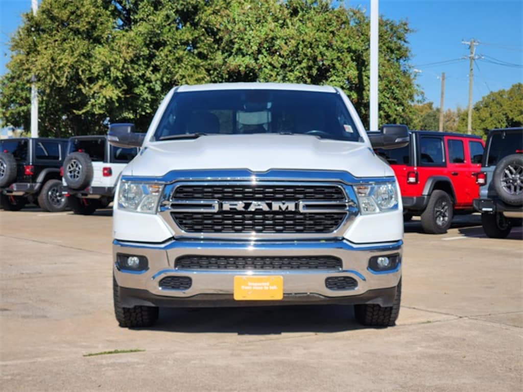 CARFAX One-Owner. Clean CARFAX. Bright White Clearcoat 2023 Ram 1500 Big Horn/Lone Star Big Horn/Lone Star 8-Speed Automatic HEMI 5.7L V8 Multi Displacement VVT eTorque RWD Bed Utility Group (MOPAR 4 Adjustable Cargo Tie-Down Hooks, MOPAR Deployable Bed Step, MOPAR Spray In Bedliner, and Pick-Up Box Lighting), Big Horn Level 1 Equipment Group (2nd Row In Floor Storage Bins, 4G LTE Wi-Fi Hot Spot, 8.4" Touchscreen Display, Apple CarPlay, Auto-Dimming Exterior Driver Mirror, Auto-Dimming Rear-View Mirror, Black Exterior Mirrors, Black Premium Power Mirrors, Bluetooth Handsfree Phone & Audio, Class IV Receiver Hitch, Connectivity - US/Canada, Convex Wide-Angle Exterior Mirror Insert, Exterior Mirrors Courtesy Lamps, Exterior Mirrors w/Heating Element, Exterior Mirrors w/Supplemental Signals, For Details, Visit DriveUconnect.com, For More Info, Call 800-643-2112, Front Fog Lamps, Glove Box Lamp, Google Android Auto, GPS Antenna Input, Heated Front Seats, Heated Steering Wheel, Integrated Center Stack Radio, Passenger Sun Visor w/Illuminated Mirror, Power-Folding Mirrors, Radio: Uconnect 5 W w/8.4" Display, Rear Dome w/On/Off Switch Lamp, Rear Power Sliding Window, Rear Window Defroster, SiriusXM Satellite Radio, and USB Host Flip), Quick Order Package 27Z Big Horn (Big Horn Badge), Trailer Tow Group (Trailer Brake Control, Trailer Light Check, Trailer Reverse Steering Control, Trailer Tire Pressure Monitoring System, and Trailer Tow Mirrors), 3 Rear Seat Head Restraints, 3.21 Rear Axle Ratio, 4 Way Front Headrests, 4-Wheel Disc Brakes, 48V Belt Starter Generator, 6 Speakers, ABS brakes, Air Conditioning, Alloy wheels, AM/FM radio, Black Trailer Tow Power Mirrors (DISC), Brake assist, Bumpers: chrome, Cloth Bench Seat, Compass, Delay-off headlights, Driver door bin, Dual front impact airbags, Dual front side impact airbags, Electronic Stability Control, Emergency communication system: SiriusXM Guardian, Exterior Parking Camera Rear, Front anti-roll bar, Front Center Armrest w/Storage, Front License Plate Bracket, Front reading lights, Front Seat Back Map Pockets, Front wheel independent suspension, Fully automatic headlights, Global Telematics Box Module (TBM), Heated door mirrors, Illuminated entry, Integrated Voice Command w/Bluetooth, Leather steering wheel, Low tire pressure warning, Manufacturer's Statement of Origin, Occupant sensing airbag, Outside temperature display, Overhead airbag, Overhead console, Panic alarm, Passenger door bin, Passenger vanity mirror, Power door mirrors, Power steering, Power windows, Radio data system, Radio: Uconnect 3 w/5" Display, RAM Grille Badge - Chrome, Rear 60/40 Folding Seat, Rear anti-roll bar, Rear seat center armrest, Rear step bumper, Remote keyless entry, Speed control, Split folding rear seat, Steering wheel mounted audio controls, Tachometer, Telescoping steering wheel, Tilt steering wheel, Traction control, Trip computer, Variably intermittent wipers, Voltmeter, Wheel to Wheel Side Steps, and Wheels: 18" x 8" Cast-Aluminum PainteD.