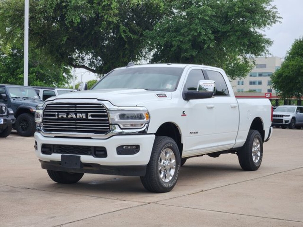 Recent Arrival! Certified. CARFAX One-Owner. Clean CARFAX. Bright White Clearcoat 2024 Ram 2500 Laramie Laramie 6-Speed Automatic Cummins 6.7L I6 Turbodiesel 4WD Laramie Level 1 Equipment Group (12" Touchscreen Display, 2nd Row In Floor Storage Bins, 4G LTE Wi-Fi Hot Spot, Alexa Built-In, Apple CarPlay, Auto Adjust In Reverse Exterior Mirrors, Auto Dim Exterior Mirror, Auto High Beam Headlamp Control, Auto Power-Folding Mirrors, Auto-Dimming Exterior Passenger Mirror, Blind Spot & Cross Path Detection, Center Hub, Chrome Exterior Mirrors, Connected Travel & Traffic Services, Connectivity - US/Canada, Disassociated Touchscreen Display, Exterior Mirrors Courtesy Lamps, Exterior Mirrors w/Heating Element, Exterior Mirrors w/Memory, Exterior Mirrors w/Supplemental Signals, Foam Bottle Insert (Door Trim Panel), For Details, Visit DriveUconnect.com, For More Info, Call 800-643-2112, Forward & Reverse Utility Lights, Front LED Fog Lamps, Global Telematics Box Module (TBM), Google Android Auto, GPS Antenna Input, GPS Navigation, HD Radio, Integrated Voice Command w/Bluetooth, LED Reflector Headlamps, LED Tail Lamps, Mirror Running Lights, Off-Road Information Pages, ParkSense Front/Rear Park Assist System, Power Adjust Mirrors, Power Adjustable Convex Aux Mirrors, Power Adjustable Pedals w/Memory, Power Heated Fold Telescopic Mirrors w/Memory, Power Telescoping Mirrors, Radio: Uconnect 5 Nav w/12.0" Display, Rain Sensitive Windshield Wipers, Rear Power Sliding Window, Rear Window Defroster, Remote Tailgate Release, Selectable Tire Fill Alert, SiriusXM Radio Service, SiriusXM w/360L, Trailer Tow Pages, and Wheels: 18" x 8.0" Polished Aluminum), Quick Order Package 2HH Laramie, Safety Group (Adaptive Cruise Control w/Stop, Adaptive Steering System, Full Speed Forward Collision Warning Plus, and Lane Keep Assist), FCA US LLC Certified Pre-Owned Certified, 10 Speakers, 115V Auxiliary Rear Power Outlet, 2 Way Rear Headrest Seat, 220 Amp Alternator, 3.73 Axle Ratio, 4 Way Front Headrests, 4-Wheel Disc Brakes, ABS brakes, Active Noise Control System, Air Conditioning, Alloy wheels, AM/FM radio: SiriusXM with 360L, Apple CarPlay/Android Auto, Automatic temperature control, Brake assist, Bumpers: body-color, Compass, Delay-off headlights, Driver door bin, Driver vanity mirror, Dual front impact airbags, Dual front side impact airbags, Electronic Stability Control, Electronically Controlled Throttle, Front anti-roll bar, Front Center Armrest w/Storage, Front dual zone A/C, Front License Plate Bracket, Front reading lights, Front Seat Back Map Pockets, Fully automatic headlights, Garage door transmitter, Heated door mirrors, Heated Front Seats, Heated front seats, Heated Steering Wheel, Heated steering wheel, Illuminated entry, Leather steering wheel, Leather Trim 40/20/40 Bench Seat, Low tire pressure warning, Manufacturer's Statement of Origin, Navigation System, Occupant sensing airbag, Outside temperature display, Overhead airbag, Overhead console, Panic alarm, ParkView Rear Back-Up Camera, Passenger door bin, Passenger vanity mirror, Power 2-Way Driver Lumbar Adjust, Power 2-Way Passenger Lumbar Adjust, Power Adjust 8-Way Driver Seat, Power Adjust 8-Way Front Passenger Seat, Power door mirrors, Power driver seat, Power passenger seat, Power steering, Power windows, Radio data system, Rear 60/40 Folding Seat, Rear anti-roll bar, Rear reading lights, Rear seat center armrest, Rear step bumper, Rear window defroster, Remote keyless entry, Security system, Speed control, Split folding rear seat, Steering wheel mounted audio controls, Tachometer, Tilt steering wheel, Tip Start, Tow Hooks, Traction control, Trip computer, Turn signal indicator mirrors, Variably intermittent wipers, and VoltmeteR.