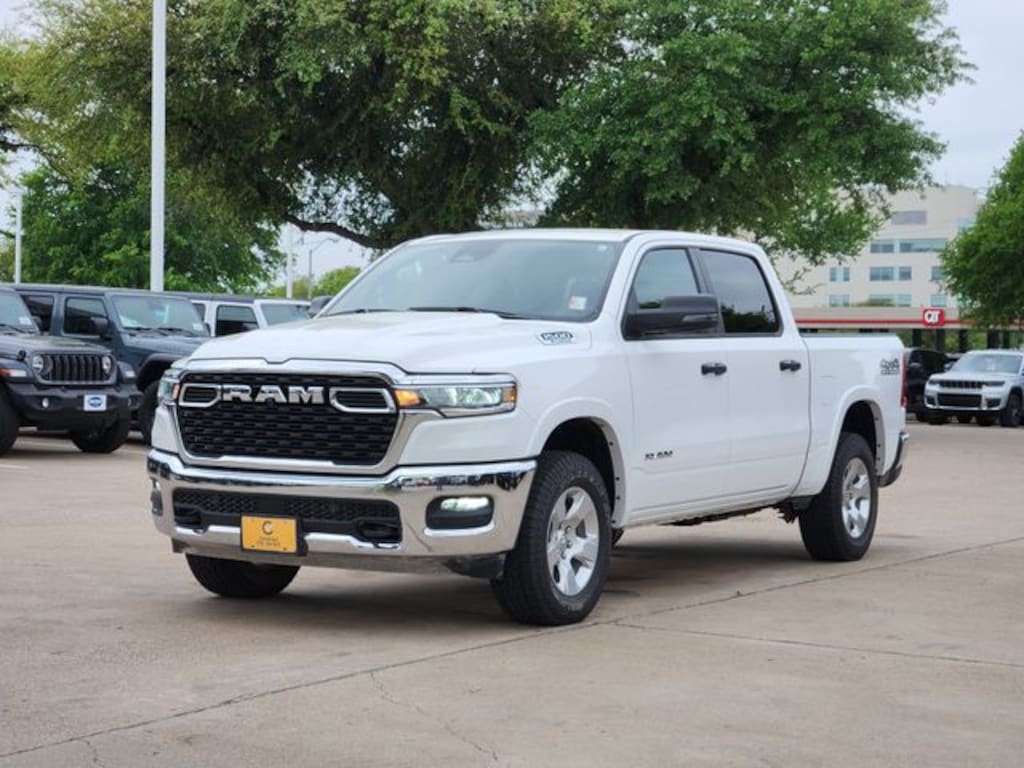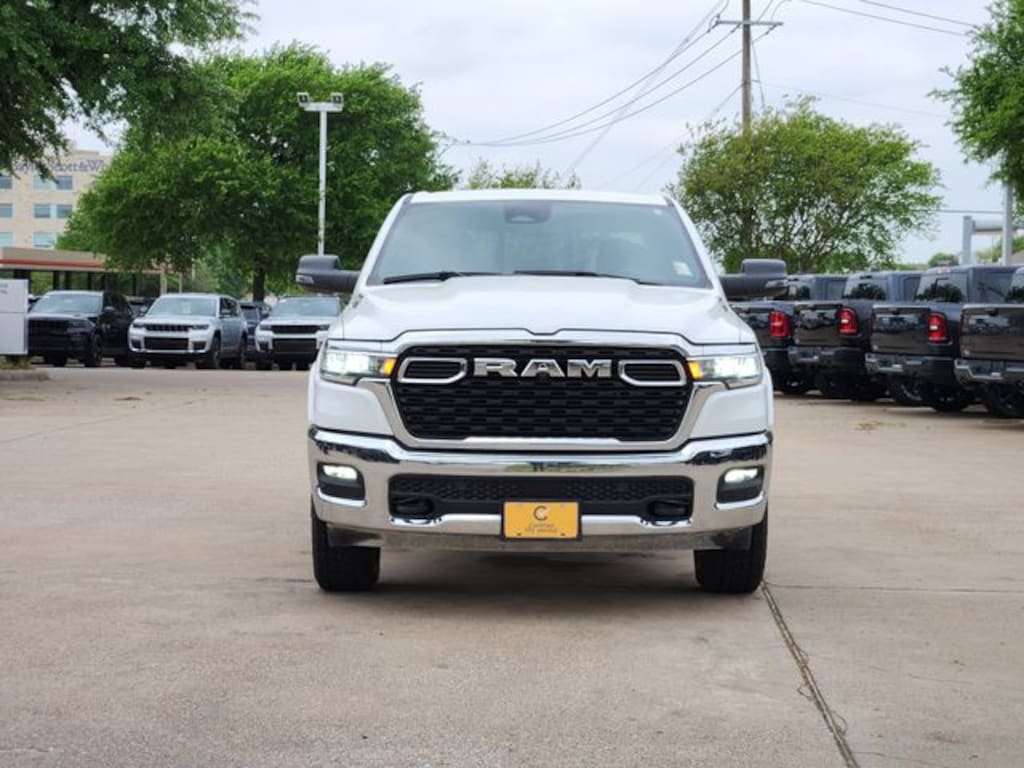 Certified. CARFAX One-Owner. Clean CARFAX. Bright White Clearcoat 2025 Ram 1500 Big Horn/Lone Star Big Horn/Lone Star 8-Speed Automatic 3.6L V6 24V VVT 4WD Big Horn Level 1 Equipment Group (115V Auxiliary Power Outlet, 2nd Row In Floor Storage Bins, 400W Inverter, Auto Power-Folding Mirrors, Auto-Dimming Exterior Driver Mirror, Auto-Dimming Rear-View Mirror, Black Exterior Mirrors, Black Premium Power Mirrors, Convex Wide-Angle Exterior Mirror Insert, Exterior Mirrors Courtesy Lamps, Exterior Mirrors w/Heating Element, Exterior Mirrors w/Supplemental Signals, Glove Box Lamp, Heated Front Seats, Heated Steering Wheel, Leather Wrapped Steering Wheel, Power 2-Way Driver Lumbar Adjust, Power Adjust 8-Way Driver Seat, Power Adjustable Pedals, Rear Power Sliding Window, Rear Window Defroster, Steering Wheel Mounted Audio Controls, Sun Visors w/Illuminated Vanity Mirrors, and Universal Garage Door Opener), Off Road Group (E-Locker Rear Axle, Falken Brand Tires, Front Extra HD Shock Absorbers, Off Road Decals, Raised Ride Height, Rear Extra HD Shock Absorbers, Selec-Speed Control, and Tow Hooks), Quick Order Package 23R Lone Star (Regional) (Lone Star Badge), FCA US LLC Certified Pre-Owned Certified, 3 Rear Seat Head Restraints, 3.21 Rear Axle Ratio, 4 Way Front Headrests, 4-Wheel Disc Brakes, 4G LTE Wi-Fi Hot Spot, 6 Speakers, ABS brakes, Air Conditioning, Alloy wheels, AM/FM radio, Apple CarPlay/Android Auto, Auto High-beam Headlights, Brake assist, Bumpers: chrome, Cloth Bench Seat, Compass, Connectivity - US/Canada, Delay-off headlights, Driver door bin, Dual front impact airbags, Dual front side impact airbags, Electronic Stability Control, Front anti-roll bar, Front Center Armrest w/Storage, Front fog lights, Front License Plate Bracket, Front reading lights, Front Seat Back Map Pockets, Front wheel independent suspension, Fully automatic headlights, GPS Antenna Input, Heated door mirrors, Illuminated entry, Integrated Voice Command w/Bluetooth, Low tire pressure warning, Manual Adjust 4-Way Front Passenger Seat, Manual Folding Exterior Mirrors, Occupant sensing airbag, Outside temperature display, Overhead airbag, Overhead console, Panic alarm, ParkView Rear Back-Up Camera, Passenger door bin, Passenger vanity mirror, Power door mirrors, Power steering, Power windows, Radio data system, Radio: Uconnect 5 W w/8.4" Display, RAM Grille Badge - Chrome, Rear 60/40 Folding Seat, Rear anti-roll bar, Rear seat center armrest, Rear step bumper, Remote keyless entry, Speed control, Split folding rear seat, Supplier Part Tracking (J-1), Tachometer, Telescoping steering wheel, Tilt steering wheel, Traction control, Trailer Brake Control, Trip computer, USB Host Flip, Variably intermittent wipers, Voltmeter, and Wheels: 18" x 8" Cast-Aluminum Painted.
