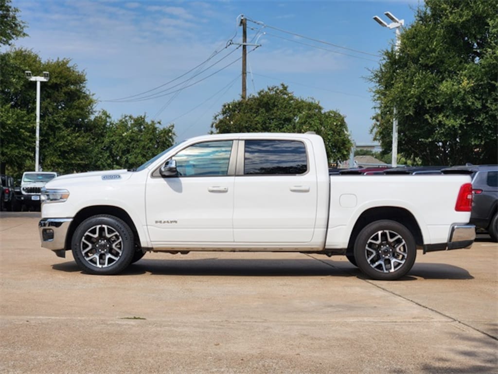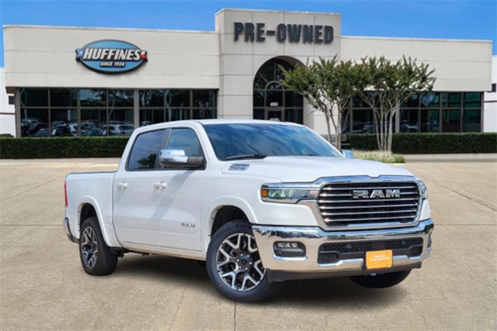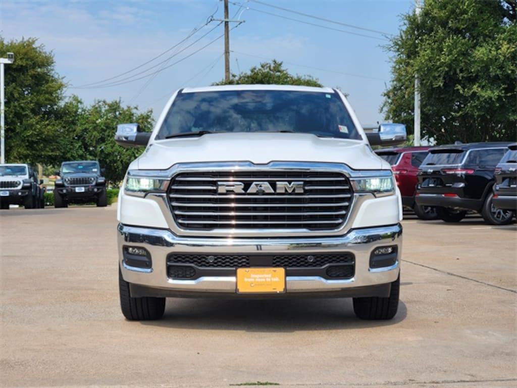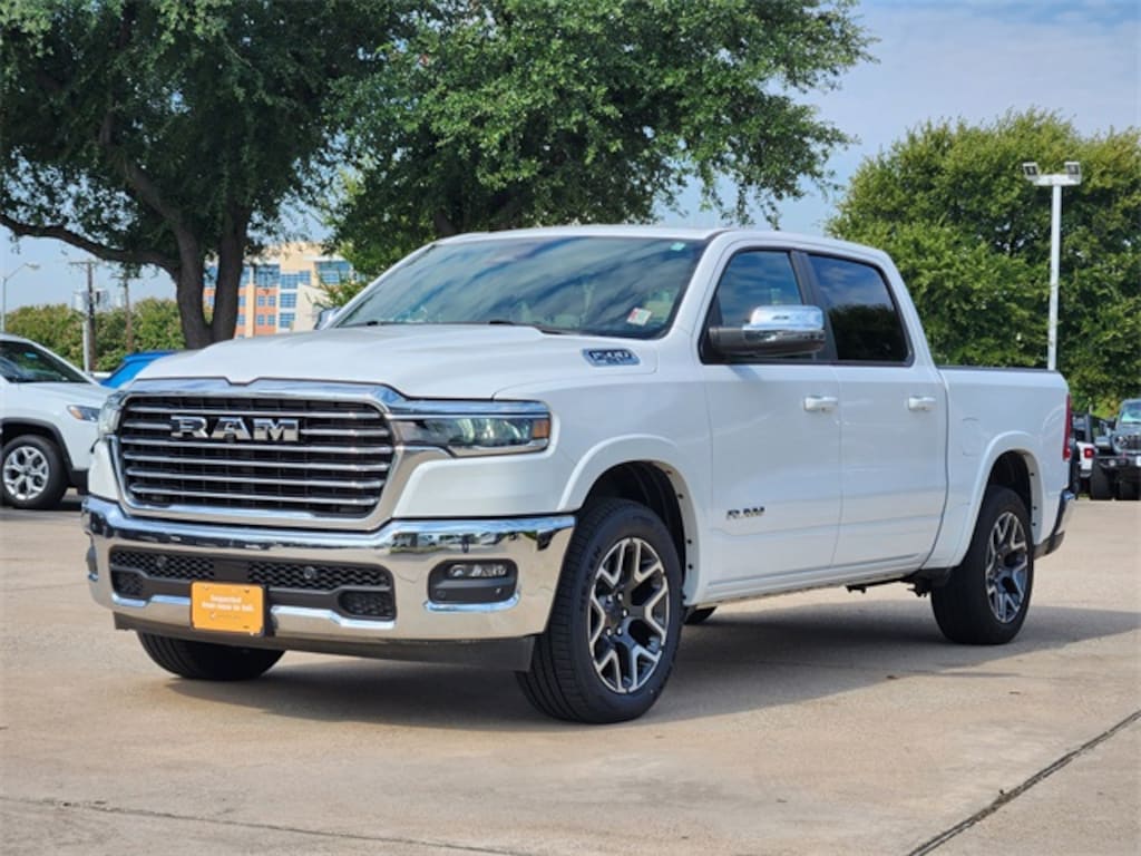 CARFAX One-Owner. Clean CARFAX. Bright White Clearcoat 2025 Ram 1500 Laramie Laramie 8-Speed Automatic 3.0L I6 4WD Laramie Level 1 Equipment Group (Rain Sensitive Windshield Wipers and Remote Tailgate Release), Quick Order Package 21H Laramie, 10 Speakers, 3 Rear Seat Head Restraints, 3.55 Rear Axle Ratio, 4 Way Front Headrests, 4-Wheel Disc Brakes, 4G LTE Wi-Fi Hot Spot, ABS brakes, Air Conditioning, Alloy wheels, AM/FM radio: SiriusXM with 360L, Apple CarPlay, Apple CarPlay/Android Auto, Audio memory, Auto High-beam Headlights, Auto Power-Folding Mirrors, Auto-dimming door mirrors, Auto-Dimming Exterior Driver Mirror, Auto-dimming Rear-View mirror, Automatic temperature control, Brake assist, Bumpers: chrome, Chrome Exterior Mirrors, Compass, Connected Travel & Traffic Services, Connectivity - US/Canada, Convex Wide-Angle Exterior Mirror Insert, Delay-off headlights, Driver door bin, Driver Seat Memory, Driver vanity mirror, Dual front impact airbags, Dual front side impact airbags, Electronic Stability Control, Exterior Mirrors Courtesy Lamps, Exterior Mirrors w/Heating Element, Exterior Mirrors w/Memory, Exterior Mirrors w/Supplemental Signals, Front anti-roll bar, Front Center Armrest w/Storage, Front dual zone A/C, Front fog lights, Front License Plate Bracket, Front reading lights, Front Seat Back Map Pockets, Front wheel independent suspension, Fully automatic headlights, Garage door transmitter, Google Android Auto, GPS Antenna Input, GPS Navigation, HD Radio, Heated door mirrors, Heated Front Seats, Heated front seats, Heated rear seats, Heated Steering Wheel, Heated steering wheel, Illuminated entry, Integrated Voice Command w/Bluetooth, Leather steering wheel, Leather Trim 40/20/40 Bench Seat, Low tire pressure warning, Manufacturer's Statement of Origin, Memory seat, Navigation System, Occupant sensing airbag, Outside temperature display, Overhead airbag, Overhead console, Panic alarm, ParkView Rear Back-Up Camera, Passenger door bin, Passenger vanity mirror, Power 2-Way Driver Lumbar Adjust, Power 2-Way Passenger Lumbar Adjust, Power Adjust 8-Way Front Passenger Seat, Power door mirrors, Power driver seat, Power passenger seat, Power steering, Power windows, Radio data system, Radio: Uconnect 5 Nav w/12.0" Display, RAM Grille Badge - Chrome, Rear anti-roll bar, Rear reading lights, Rear seat center armrest, Rear step bumper, Remote keyless entry, Security system, SiriusXM w/360L, Speed control, Split folding rear seat, Steering wheel mounted audio controls, Tachometer, Telescoping steering wheel, Tilt steering wheel, Traction control, Trip computer, Turn signal indicator mirrors, USB Host Flip, Variably intermittent wipers, Ventilated Front Seats, Ventilated front seats, Voltmeter, and Wheels: 20" x 9" Premium Paint/Polish.