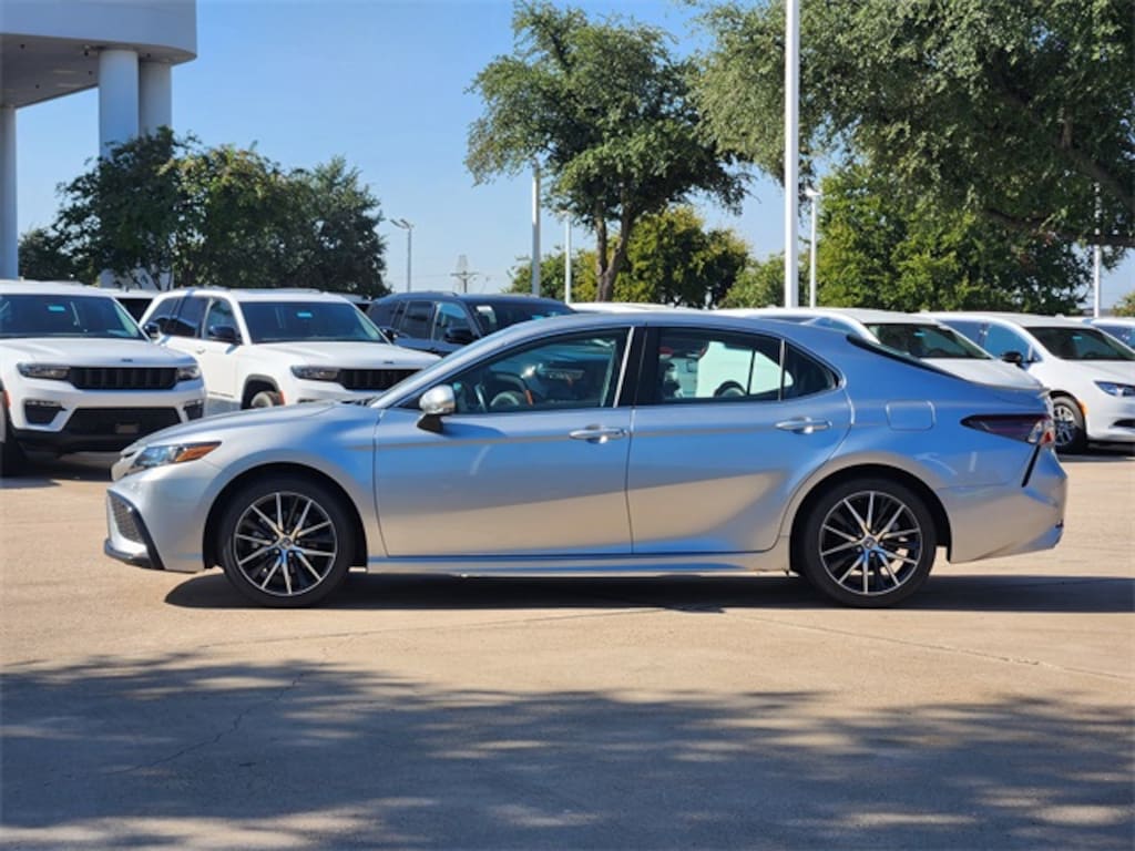 CARFAX One-Owner. Clean CARFAX. Celestial Silver 2024 Toyota Camry SE SE 8-Speed Automatic 2.5L I4 DOHC 16V FWD Black Artificial Leather, 18" x 8J Alloy Wheels, 4-Wheel Disc Brakes, 6 Speakers, ABS brakes, Air Conditioning, Alloy wheels, AM/FM radio: SiriusXM, Apple CarPlay/Android Auto, Auto High-beam Headlights, Automatic temperature control, Brake assist, Bumpers: body-color, Delay-off headlights, Driver door bin, Driver vanity mirror, Dual front impact airbags, Dual front side impact airbags, Electronic Stability Control, Emergency communication system: Safety Connect (1-year trial), Exterior Parking Camera Rear, Four wheel independent suspension, Front anti-roll bar, Front Bucket Seats, Front Center Armrest, Front dual zone A/C, Front reading lights, Fully automatic headlights, Heated door mirrors, Illuminated entry, Knee airbag, Leather steering wheel, Low tire pressure warning, Occupant sensing airbag, Outside temperature display, Overhead airbag, Overhead console, Panic alarm, Passenger door bin, Passenger vanity mirror, Power door mirrors, Power driver seat, Power steering, Power windows, Radio data system, Radio: Audio, Rear anti-roll bar, Rear seat center armrest, Rear side impact airbag, Rear window defroster, Remote keyless entry, Security system, Speed control, Speed-sensing steering, Split folding rear seat, Spoiler, Sport SofTex Seat Trim w/Fabric Inserts, Steering wheel mounted audio controls, Tachometer, Telescoping steering wheel, Tilt steering wheel, Traction control, Trip computer, Turn signal indicator mirrors, and Variably intermittent wipers.
