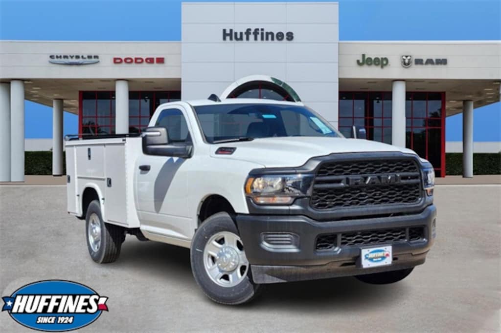 Bright White Clearcoat Tradesman RWD 8-Speed Automatic 6.4L V8 Convenience Group (Air Cond ATC w/Dual Zone Control, Auto-Dimming Rear-View Mirror, and Tinted Acoustic Windshield Glass), Quick Order Package 2GA Tradesman, Tradesman Level 1 Equipment Group (Black Exterior Mirrors, Exterior Mirrors Courtesy Lamps, Exterior Mirrors w/Heating Element, Exterior Mirrors w/Supplemental Signals, Front 1-Touch Down Power Windows, Manual Folding Exterior Mirrors, Manual Telescoping Mirrors, Mirror Running Lights, Overhead Console, Overhead Cupholder Lamp, Power Adjust Mirrors, Power Heated Folding Telescopic Mirrors, Power-Adjustable Convex Aux Mirrors, Remote Keyless Entry, Speed Sensitive Power Locks, and Upgraded Door Trim Panel), 115V Auxiliary Front Power Outlet, 17" x 7.5" Steel Styled Wheels, 2-Way Front Head Restraints, 220 Amp Alternator, 4 Speakers, 4-Wheel Disc Brakes, 40/20/40 Split Bench Seat, 400W Inverter, 4G LTE Wi-Fi Hot Spot, 8.4" Touchscreen Display, ABS brakes, Air Conditioning, Alexa Built-In, All R1 High Radios, All Radio Equipped Vehicles, AM/FM radio, Anti-Spin Differential Rear Axle, Apple CarPlay, Brake assist, Bulb Out Detection Defeat for LED, Center Hub, Compass, Connected Travel & Traffic Services, Connectivity - US/Canada, Delay-off headlights, Delete Pickup Box, Disassociated Touchscreen Display, Driver door bin, Dual front impact airbags, Dual front side impact airbags, Electronic Stability Control, Electronically Controlled Throttle, Emergency communication system: SiriusXM Guardian, Exterior 115V AC Outlet, For Details, Visit DriveUconnect.com, For More Info, Call 800-643-2112, Front anti-roll bar, Front Armrest w/Cupholders, Front Center Armrest w/Storage, Front License Plate Bracket, Front reading lights, Fully automatic headlights, Global Telematics Box Module (TBM), Google Android Auto, GPS Antenna Input, GPS Navigation, HD Radio, Heavy Duty Vinyl 40/20/40 Split Bench Seat, I/P Mounted Auxiliary Switches, Illuminated entry, Integrated Center Stack Radio, Integrated Voice Command w/Bluetooth, Low tire pressure warning, Manual Adjust 4-Way Driver Seat, Manual Adjust 4-Way Front Passenger Seat, Occupant sensing airbag, Off-Road Info Pages, Outside temperature display, Overhead airbag, ParkView Rear Back-Up Camera, Passenger door bin, Passenger vanity mirror, Power steering, Radio data system, Radio: Uconnect 3 w/5" Display, Radio: Uconnect 5 Nav w/8.4" Display, Rear anti-roll bar, Rear step bumper, Remote USB Port - Charge Only, Selectable Tire Fill Alert, SiriusXM Radio Service, SiriusXM w/360L, Speed control, Tachometer, Tilt steering wheel, Tip Start, Traction control, Trailer Brake Control, Trailer Light Check, Trailer Tow Pages, Upfitter Electronic Module (VSIM), Variably intermittent wipers, Voltmeter, and Wheels: 18" x 8.0" SteeL.